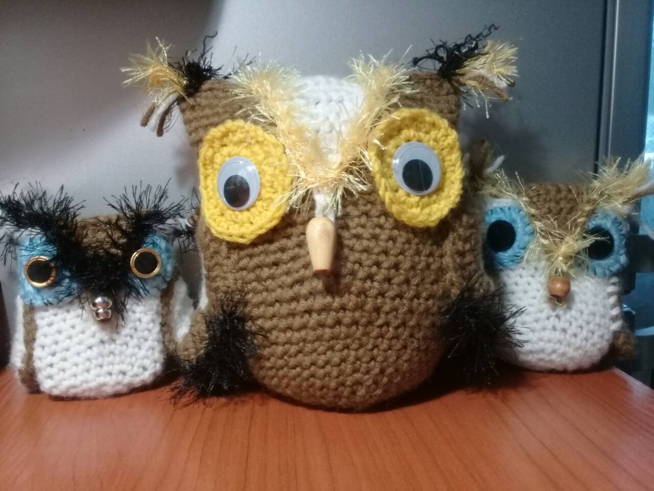 Мама увлеклась различными поделками. Сейчас вот вяжет крючком такие игрушки на подарки друзьям и родным.
