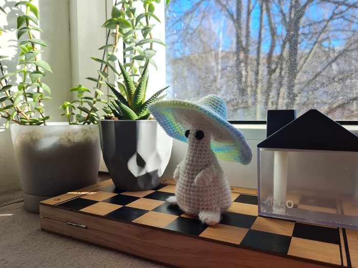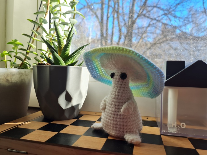 Такой "живой" грибочек, как мне кажется, мог бы быть помощником какого-нибудь волшебника, или обычным грибочком родом из магического леса)