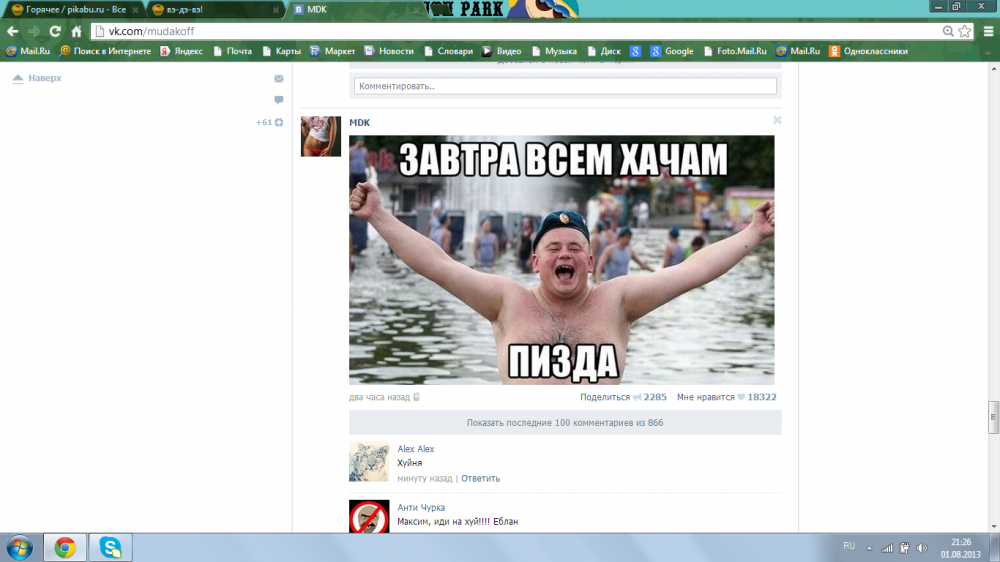 ну боевое соотношение 1 вдвшник на 10 хачей, так что ВДВшник в квадрате (после 2 бутылок водки) способен разогнать уже 100 хачей.