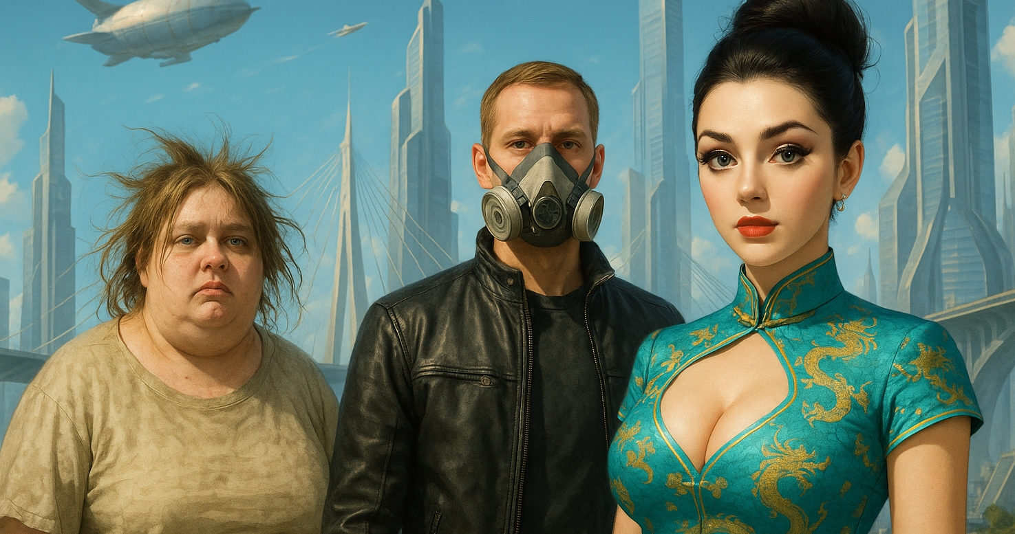 - Погоди! Пожалуйста, не убегай! Я хочу с тобой поговорить! - но девушка уже выскользнула за дверь, растворившись в ослепительном, после тёмного зала, дневном свете. Он, немного помедлив, выскочил за ней. Сейчас он уже думал, что готов увидеть всё что угодно, но снова ошибся. Яркое солнце освещало гигантский мегаполис. Высокие небоскрёбы тянулись ввысь, что приходилось до хруста напрягать шею, чтобы увидеть вершины ближайших из них. Между верхними этажами небоскрёбов были прокинуты вантовые мосты, образуя анфилады своеобразных арок, тянущихся в бесконечность. Воздух был наполнен мириадами мелких дронов-квадрокоптеров, снующих целыми роями в упорядоченном хаосе. Более крупные аппараты, явно на реактивной тяге, величественно проносились по более плавным маршрутам, иногда сбиваясь в целые воздушные эшелоны, а где-то совсем в вышине, плавно и величественно плыли, переливаясь разными цветами, гигантские дирижабли. Над парковыми зонами, окружавшими небоскрёбы, фонтанировали голографические проекции высочайшего качества - даже солнечные лучи не могли их пробить, из-за чего они казались почти материальными. Из множества открытых окон звучала музыка, доносился радостный смех, воздух был чист и свеж, и лишь изредка слышались отдалённые ароматы аппетитных блюд, отчего его рот неожиданно наполнился слюной. Жизнь била ключом. Жизнь? Он огляделся. Город был наполнен движением, но вокруг не было ни души. Ни единого человека вокруг. Словно съёмочная площадка какого-то фильма, которую оставили актёры, ушедшие на перерыв.