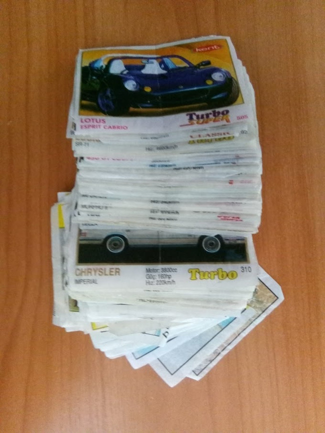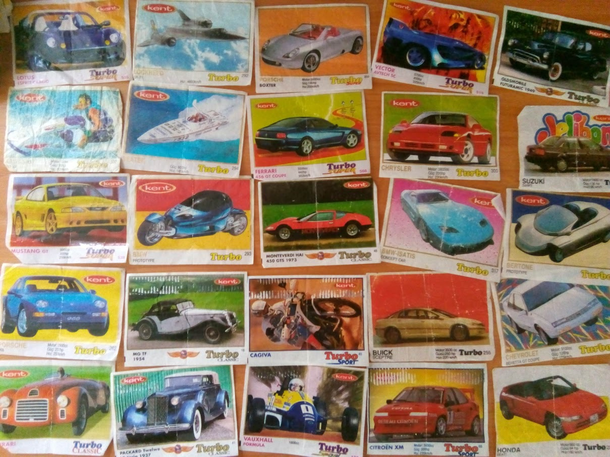 как я помню, больше всего ценились вкладыши жвачки Turbo. Согласно Википедии, в 1994-95 годах жевательная резинка «Turbo» стала производиться в трёх вариантах: «Turbo Super», «Turbo Classic» и «Turbo Sport», различающиеся типами автомобилей на вкладышах (современные, ретро или спортивные). В конце 1990-х выпускался также вариант Turbo под названием «Turbo 2000». В 2002 году турецкая компания Kent была приобретена британской компанией Cadbury. Выпуск жевательных резинок «Turbo Super» и «Turbo Sport» продолжался до 2007 года