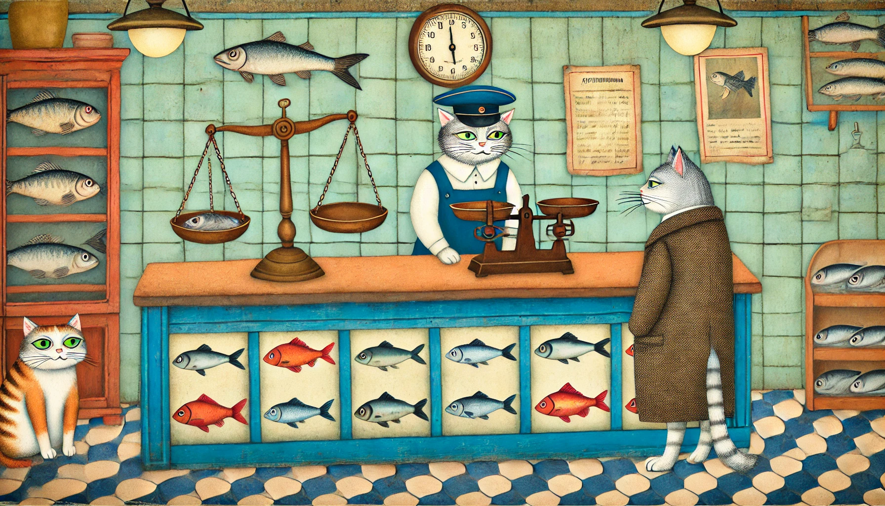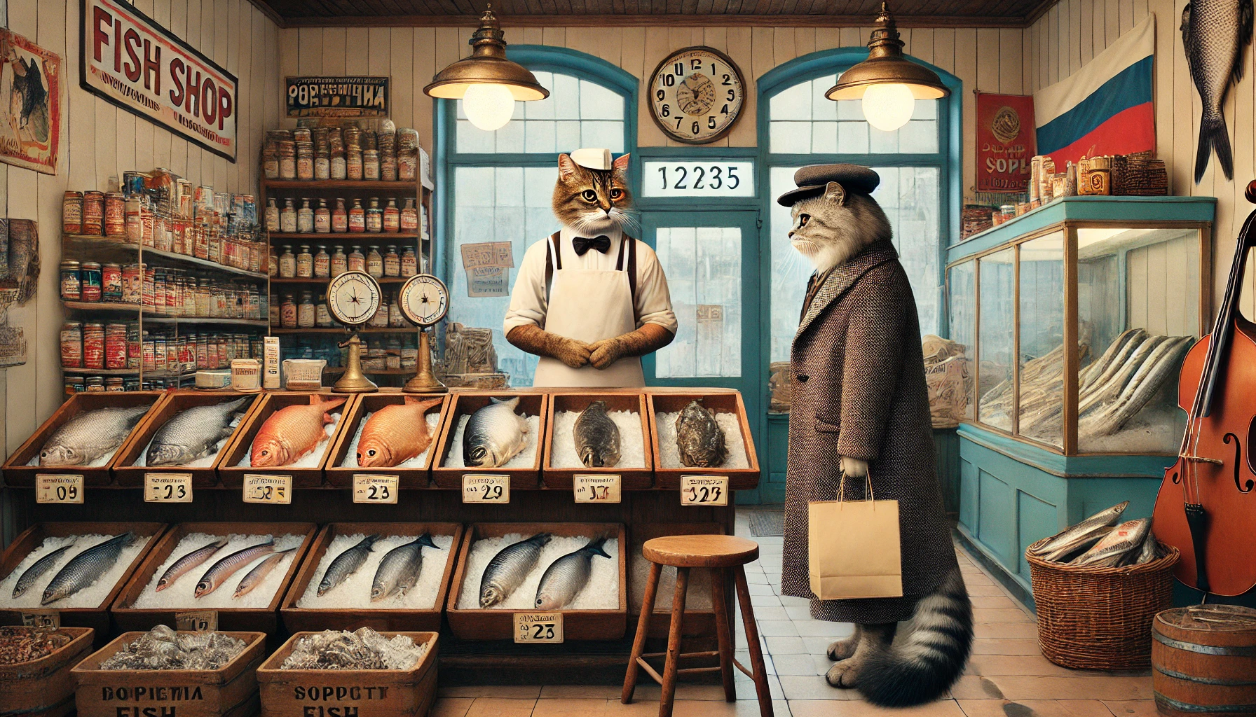 Сегодня захотелось обыграть сцену "Вы рыбов продаете - нет, показываем", в ретро-уютном стиле