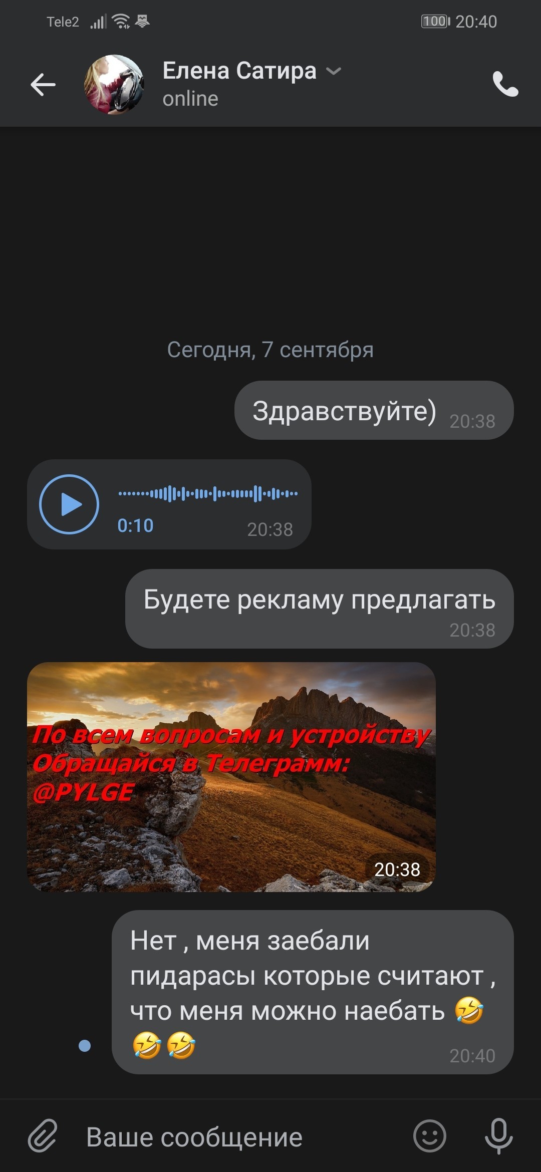 DeFrank Вы серьезно 6 лет назад Голосовое сообщение- если тебе тоже надоела маленькая зарплата и задержки с выплатами то у нас есть вакансии для тебя 🤣🤣🤣 [моё] Спам Мошенничество Длиннопост