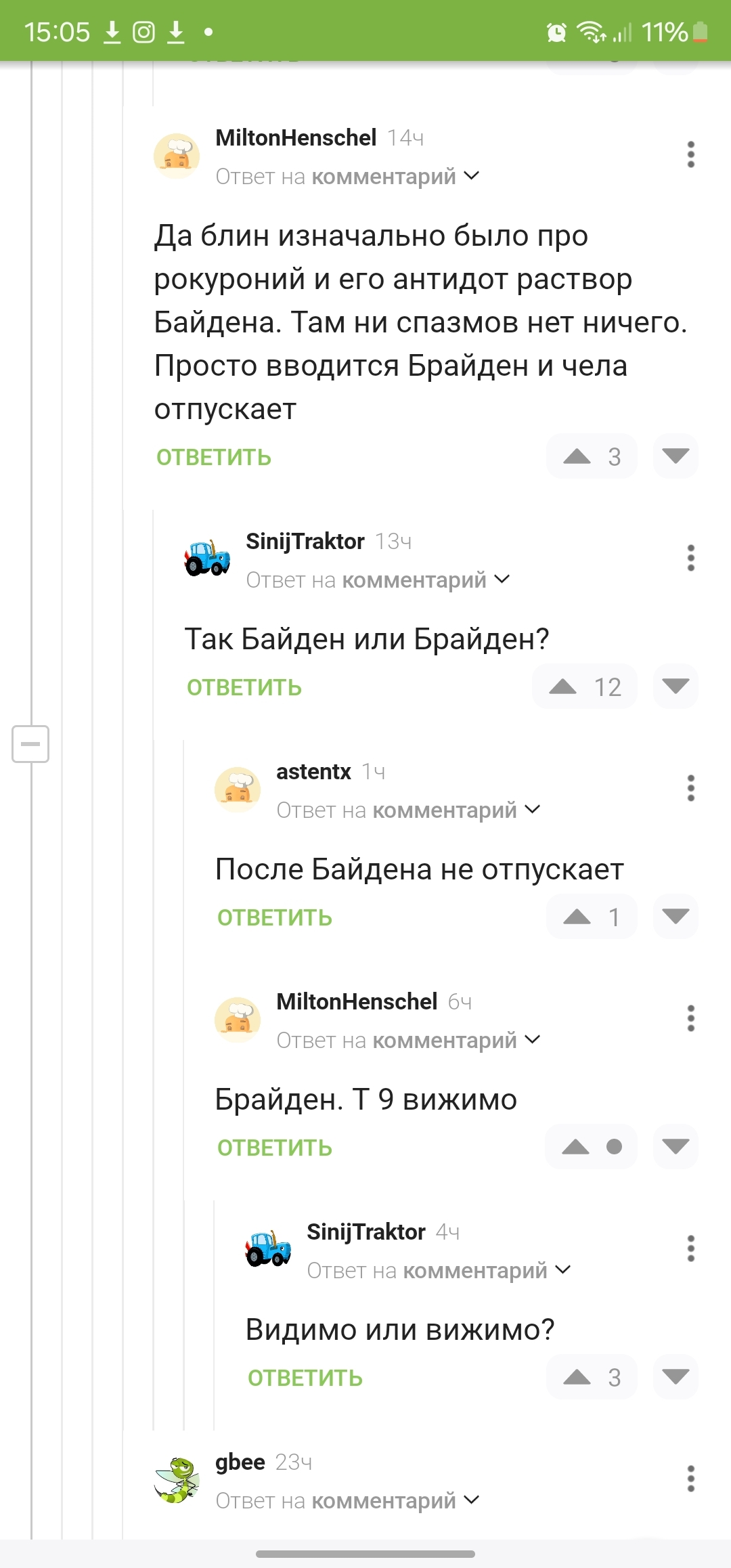2 B0WY Вы в телевизоре 1 год назад @MiltonHenschel, @SinijTraktor, @astentx, спасибо, поржал)Ссылка на коментарий: #comment_316945785 Комментарии на Пикабу Джо Байден Анестезиолог Анестезия Длиннопост Скриншот Ещё 0
