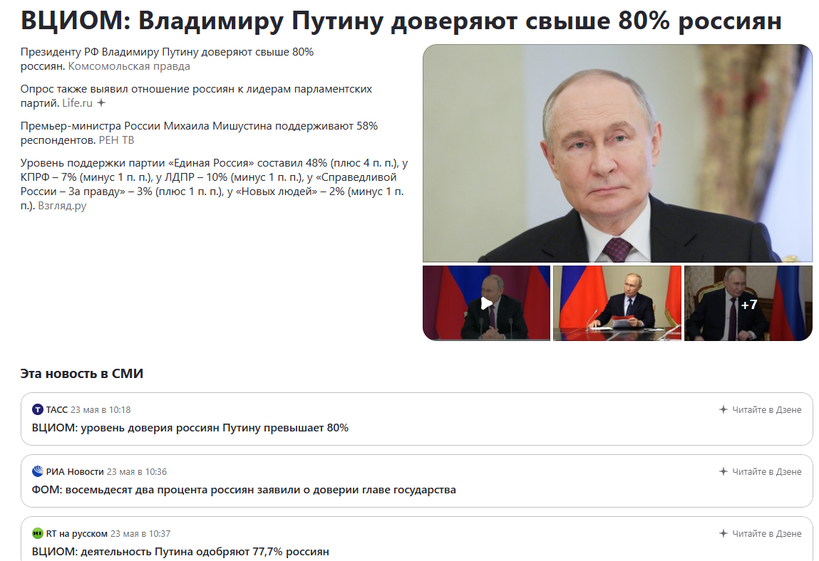 Giya35 Вы верите в эти опросы!? 6 месяцев назад https://www.vedomosti.ru/politics/news/2025/05/23/1112169-pu... [моё] Владимир Путин Опрос ВЦИОМ Президент 2 1 1 Ещё 0
