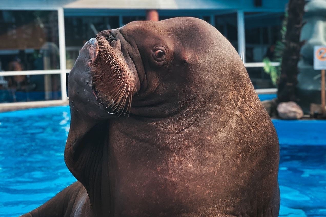 В Московском зоопарке можно увидеть несколько представителей ластоногих. Моржи очень контактные, могут позировать или махать посетителям.