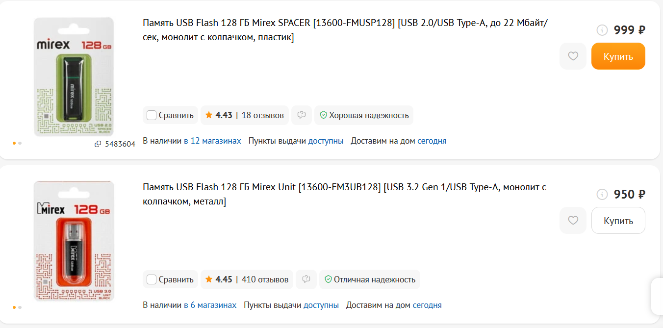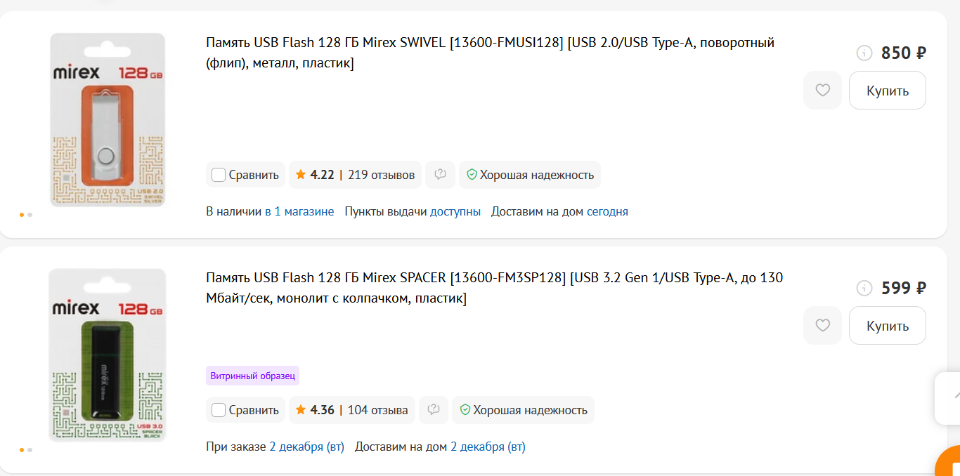 Ладно, перестанем искать качество среди дешмана. Перейдем в категорию дороже 600 руб за 128 Г, сразу скроем всяких ноунеймов. И что, думаете помогло? Вот вам