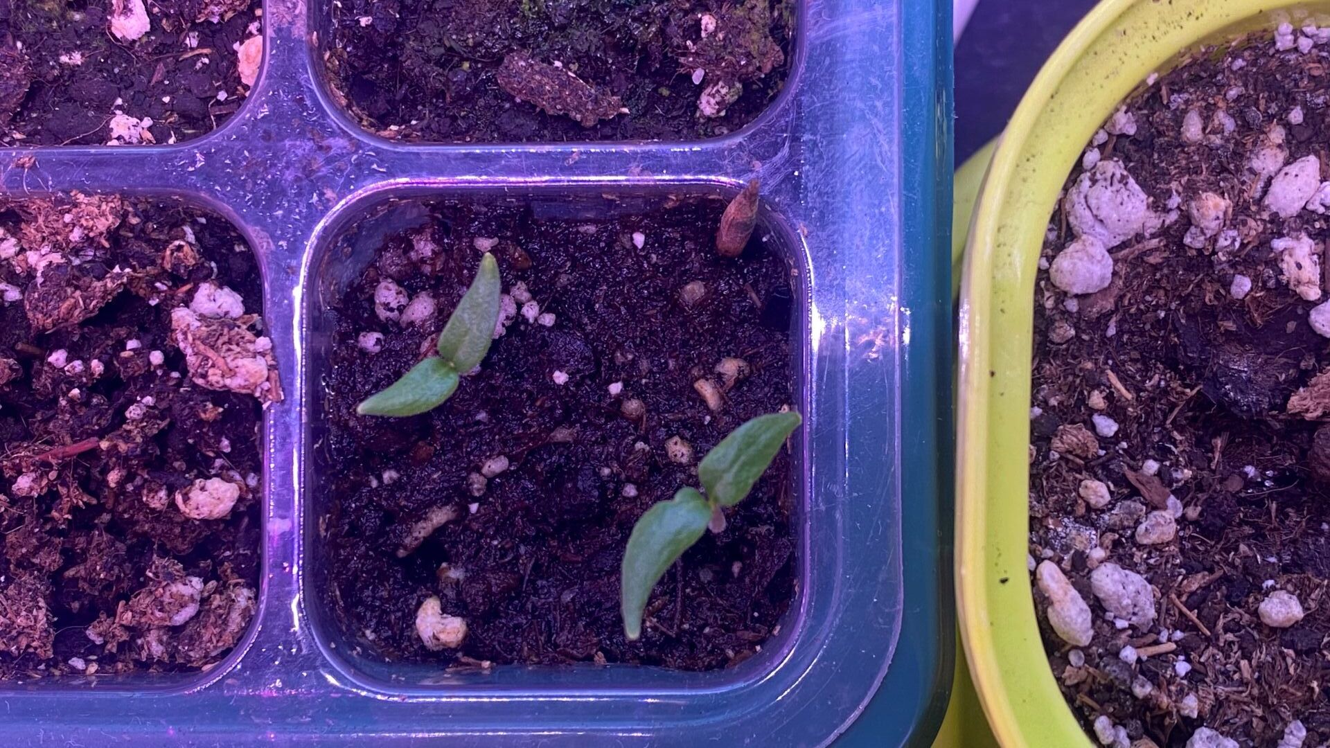 А семена Призрака урожая прошлого года уже дали всходы. Два семечка – два росточка. Всхожесть 100 %!