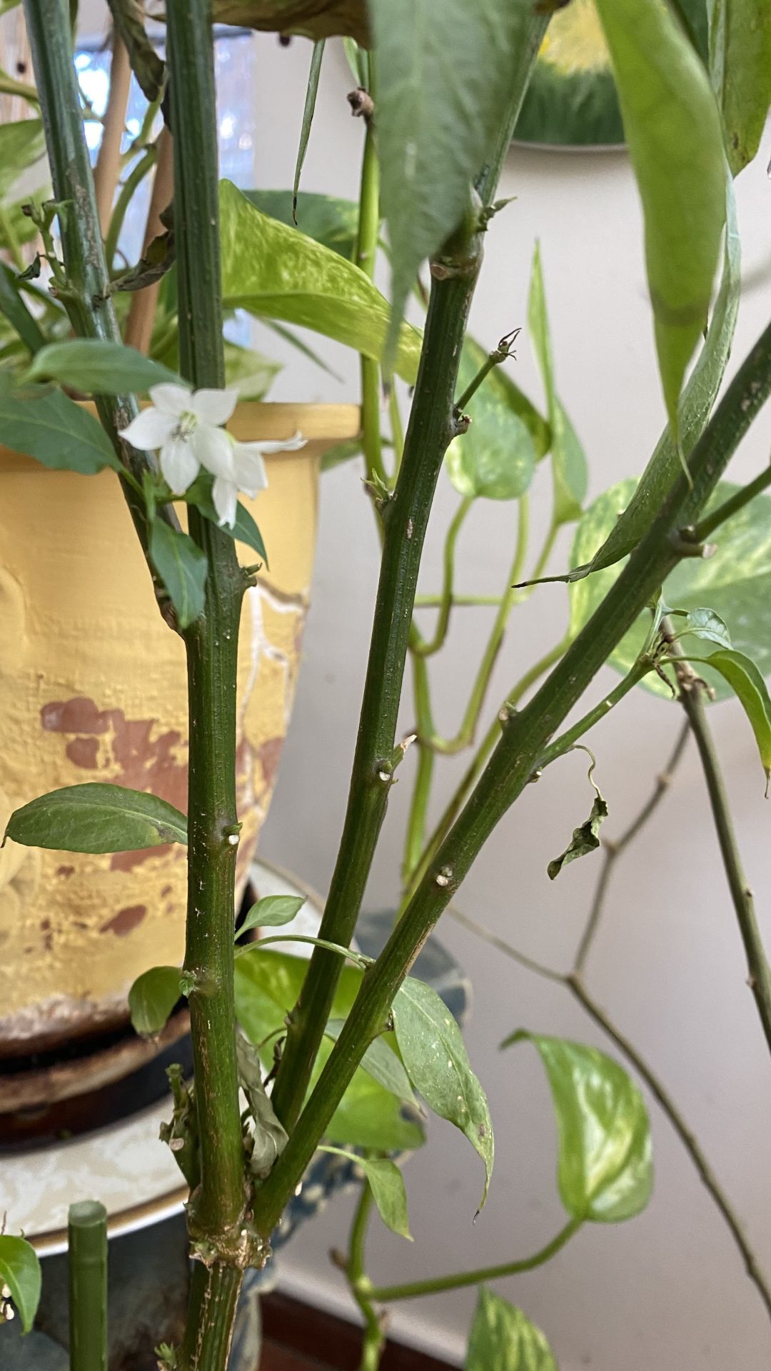 Конечно, никто не будет несправедливо поступать по отношению к Пеперончино (Peperoncino), которые смогут пережить зимовку за городом. Сомнений в том, что так и будет, совершенно нет. Смотрим на перчик и видим что? Доказательством его стремления к жизни являются цветы на его веточках!