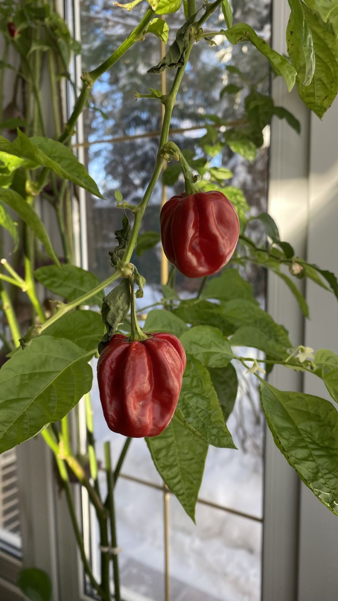 Сосланный в деревенскую ссылку Хабанеро красный тоже чувствует себя совершенно неплохо. И даже позволил собрать с себя первый (Карл!) урожай в 2026 году!
