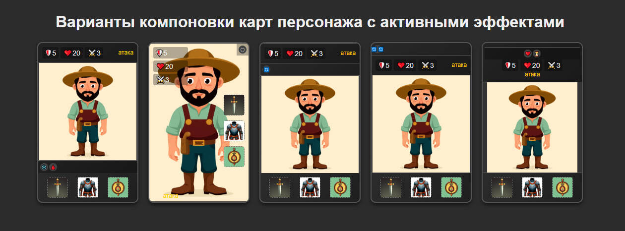 1 O9nix IT Выбор компоновки карт 14 часов назад Создаю карточную игру и мне необходимо решить, какой из вариантов компоновки лучше подходит для игры Какой вариант лучше 1 2 3 4 5 [моё] Опрос Программирование Разработка Карточная игра Javascript Gamedev Вопрос Спроси Пикабу Ещё 0
