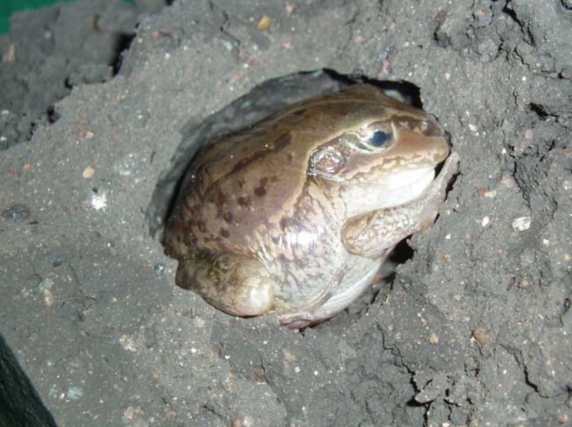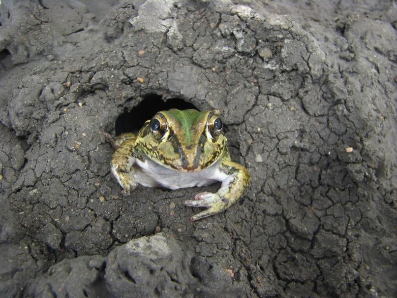 Некоторые наземные лягушки (например, американская жаба) роют себе на зиму нору и спят в ней. Другие виды, менее приспособленные к рытью, прячутся в расщелинах или закапываются в сухие листья.