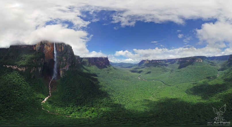 Анхель — самый высокий в мире водопад, общая высота 1054 метра, высота непрерывного падения 807 метров. Назван в честь лётчика Джеймса Эйнджела, который пролетел над водопадом в 1933 году.