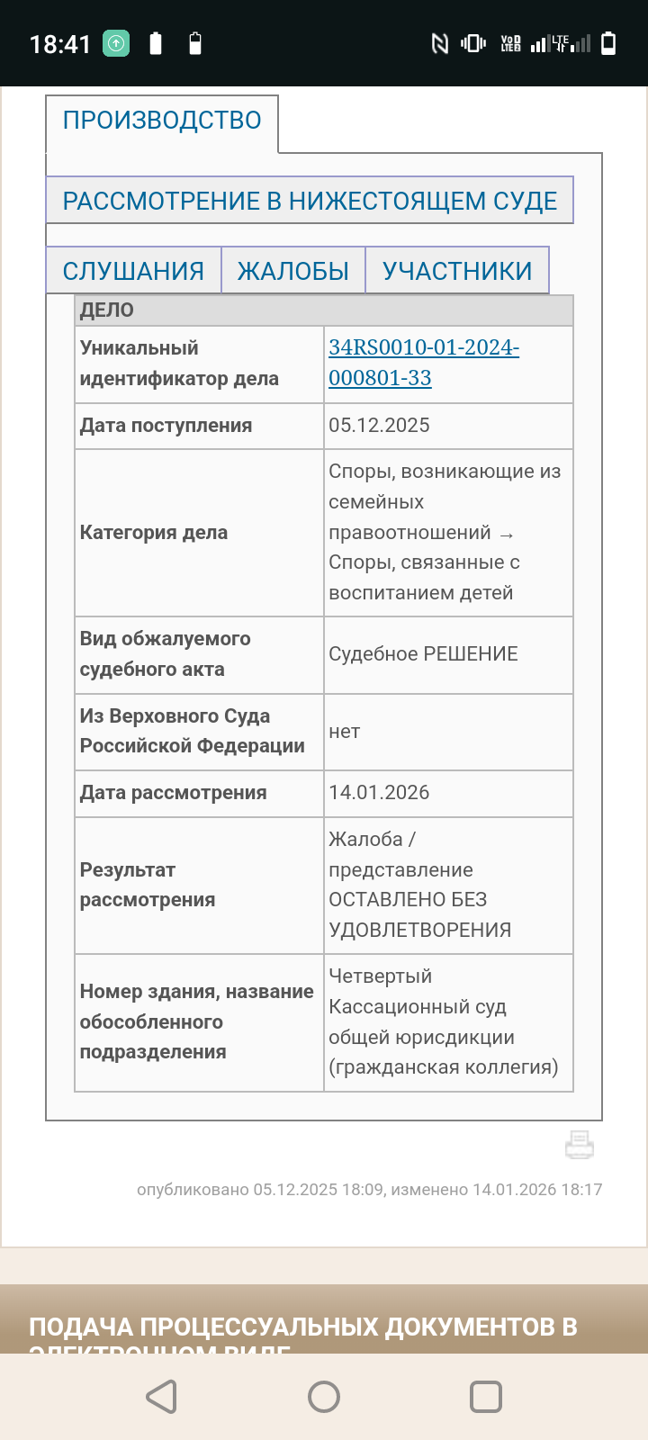 В ноябре мне пришла от бывшей жены жалоба в кассационный суд.