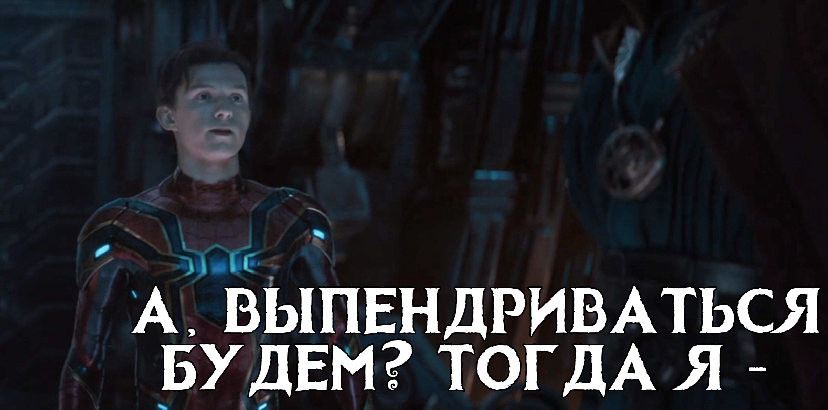 SLIMPER753 КиноМемес Юмор Выпендриваться будем? 3 года назад ТараХтелек [моё] Юмор Картинка с текстом Мемы Фильмы Мстители Мстители: Война бесконечности Мстители: Финал Бэтмен Зубенко Танос Человек-паук Ещё 0
