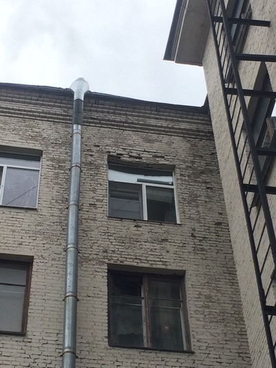 Можно сказать кирпичная кладка вот-вот рухнет. Держится на деревянной перемычке и честном слове. Думаю, надо бы отправить на всеми известный портал "Наш Санкт-Петербург". Отправил, ответ долго не заставил ждать.