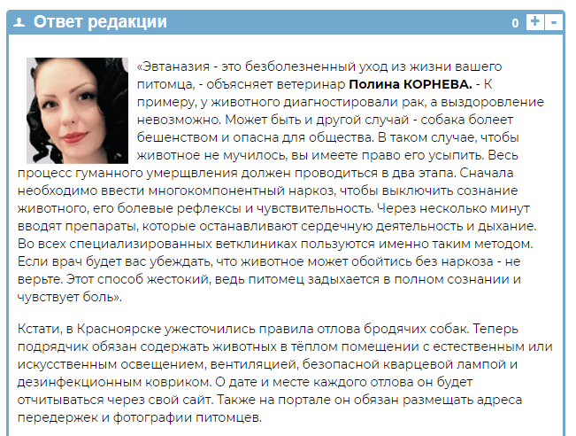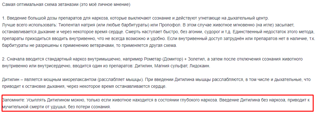 По первой ссылке попадаем на сайт со статьей о гуманном усыплении и видим абзац: