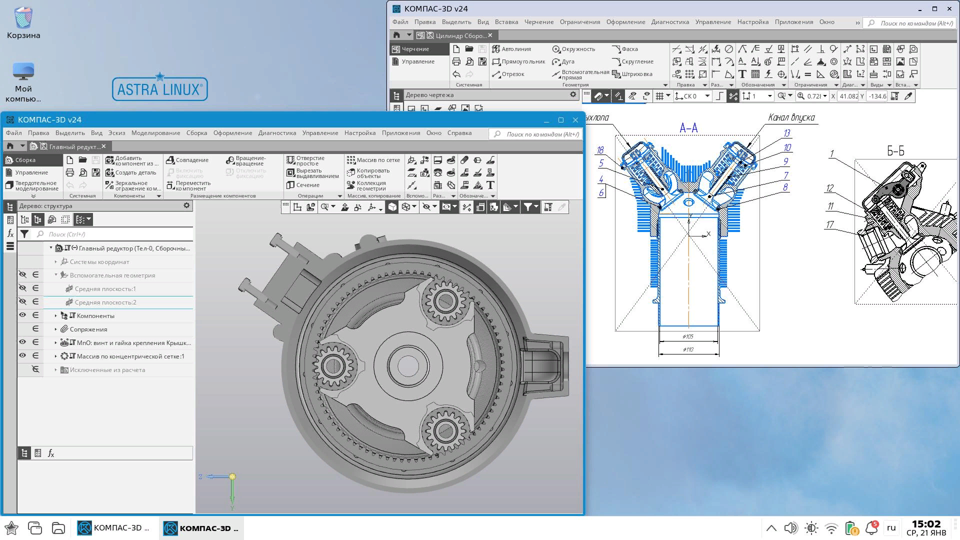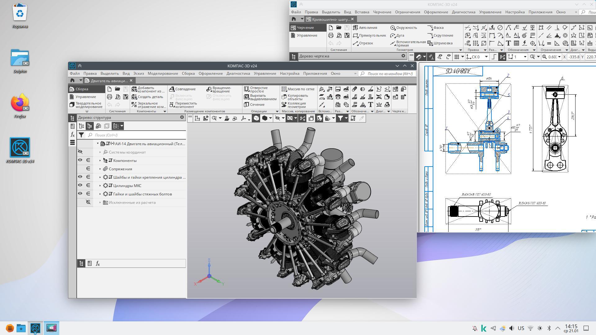 В состав КОМПАС-3D v24 для Linux входят основные компоненты: