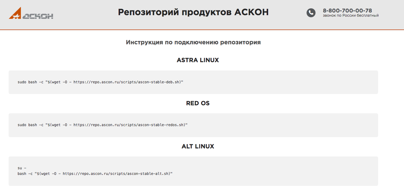 Подключение репозитория АСКОН на Linux