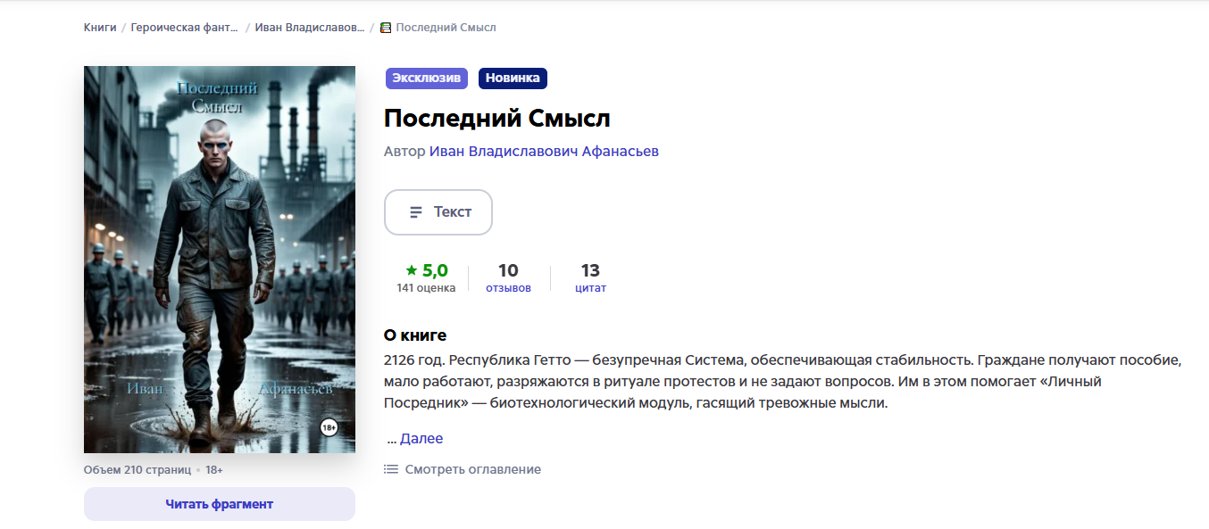 Надеюсь, все поняли самоиронию в заголовке. Ну что, уважаемые, продолжаю делиться своим графоманским опытом, хоть и не графоман. Решил здесь периодически рассказывать, как продвигаю без бюджета свой фантастический роман-антиутопию «Последний Смысл». Книгу опубликовал совсем недавно (до этого несколько месяцев была опубликована как черновик). Написал не ради денег — просто всегда хотел это сделать.