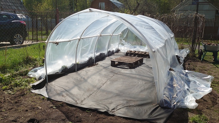 Ну а прежде, чем высадить арбуз, нужно было подготовить для него место. Расти он будет в теплице, которая сделана по принципу всех остальных моих теплиц, процесс изготовления которых я описывал в предыдущих публикациях.