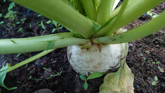 А гигантская репа начала трещать по швам и со всех сторон пошли трещины. Я поинтересовался на зарубежных форумах и мне сказали, что это норма. По последним замерам ее окружность составляла 30 см.