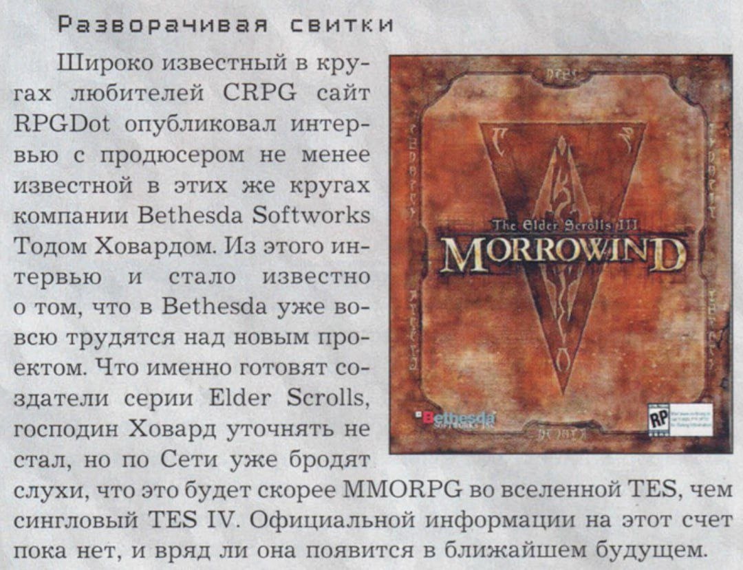 2 Augustl Игры Вырезки из старых журналов 1 год назад Картинка с текстом Картинки Журнал 90-е 2000-е Олдскул Олдфаги Ретро Компьютерные игры The Elder Scrolls Ностальгия Ретро-игры The Elder Scrolls III: Morrowind Bethesda The Elder Scrolls II: Daggerfall Детство 90-х Длиннопост Вырезки из газет и журналов Ещё 0