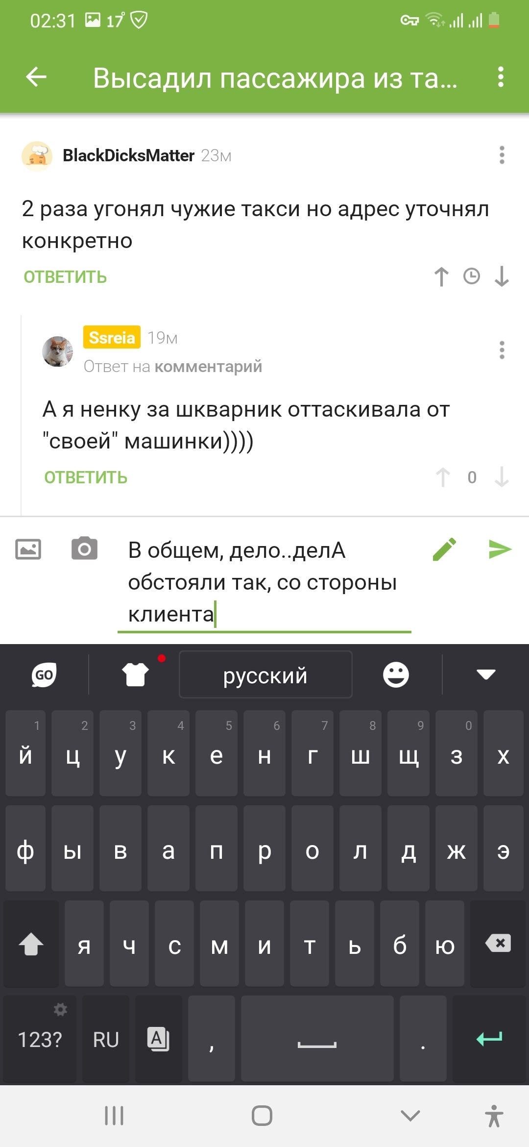Что с клиентом, которого я вёз? Ладно, не расслышал адрес, который я назвал. Но блин, тебя не смутило, что мы едем 30 минут? Вообще ни разу? Тебе же ехать совсем чуть чуть.