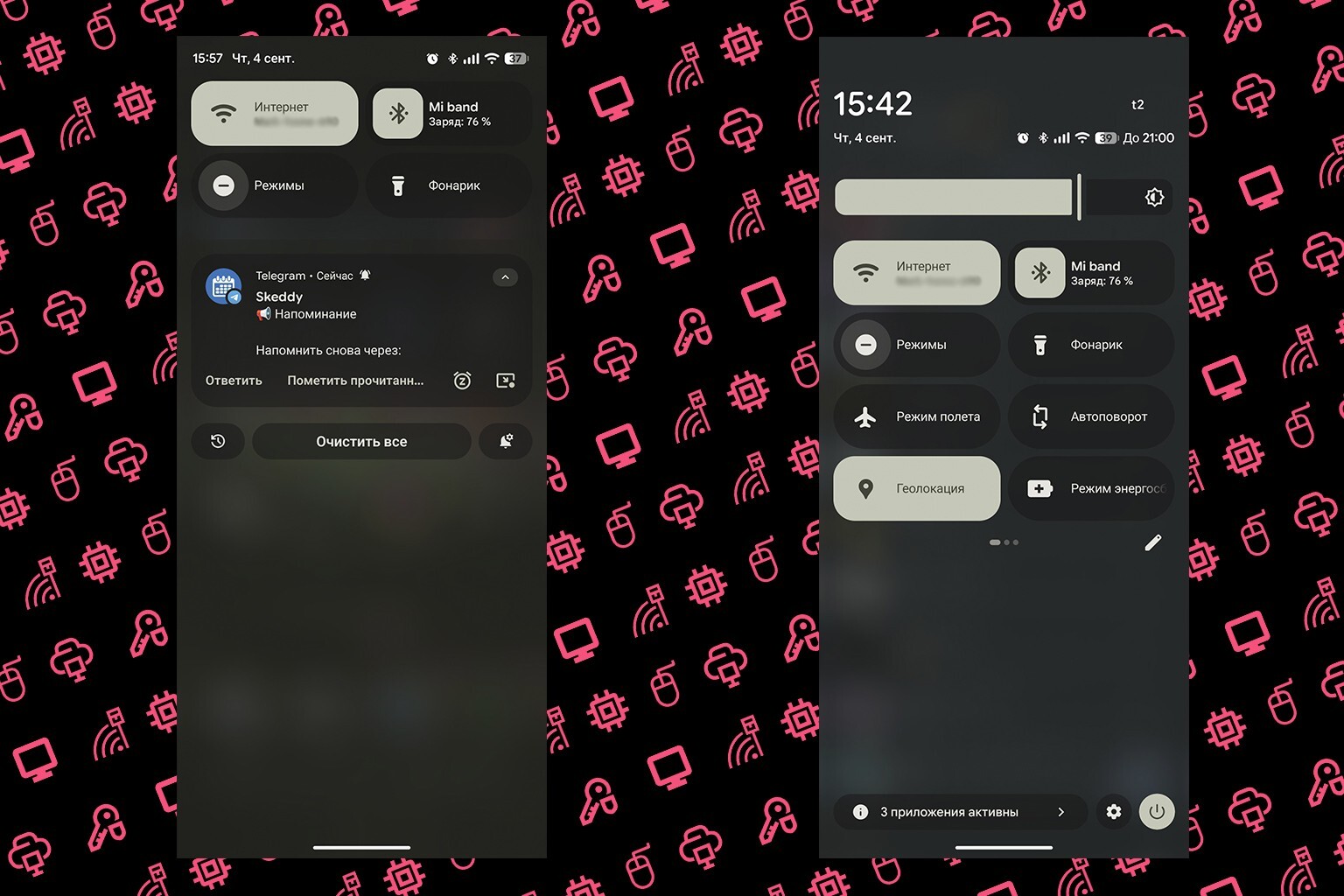 Обновились быстрые настройки — теперь можно изменить размер плиток так, чтобы на них отображались только значки без текстовых подписей. Вместо 8 плиток (2×4) можно разместить максимум 16 (4×4).