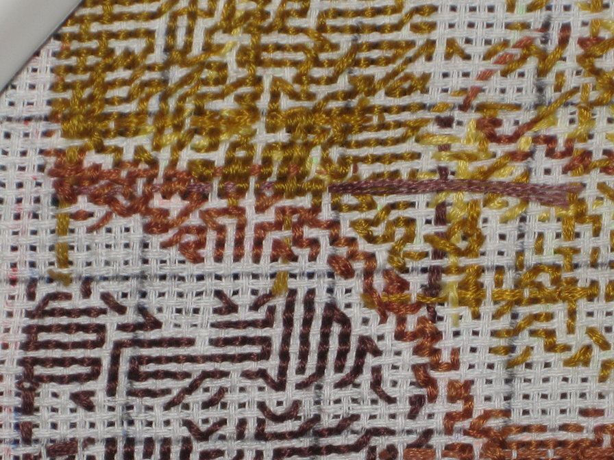 Однако некоторые умеют вышивать так, что на изнанке только "палочки" в одном направлении, создающие теневую версию рисунка. Такая изнанка называется идеальной.