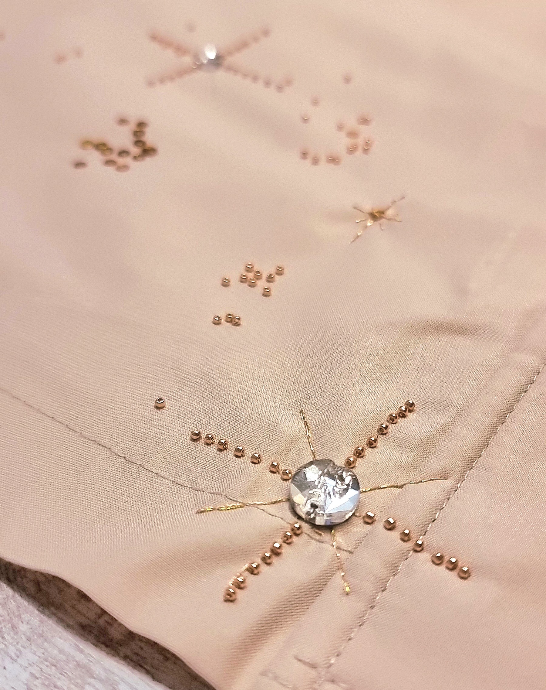 Материалы: куртка, вышивальные нитки, пайетки 3мм, бисер Delica 11, бисер Toho 15, пришивные стразы 8-10мм.