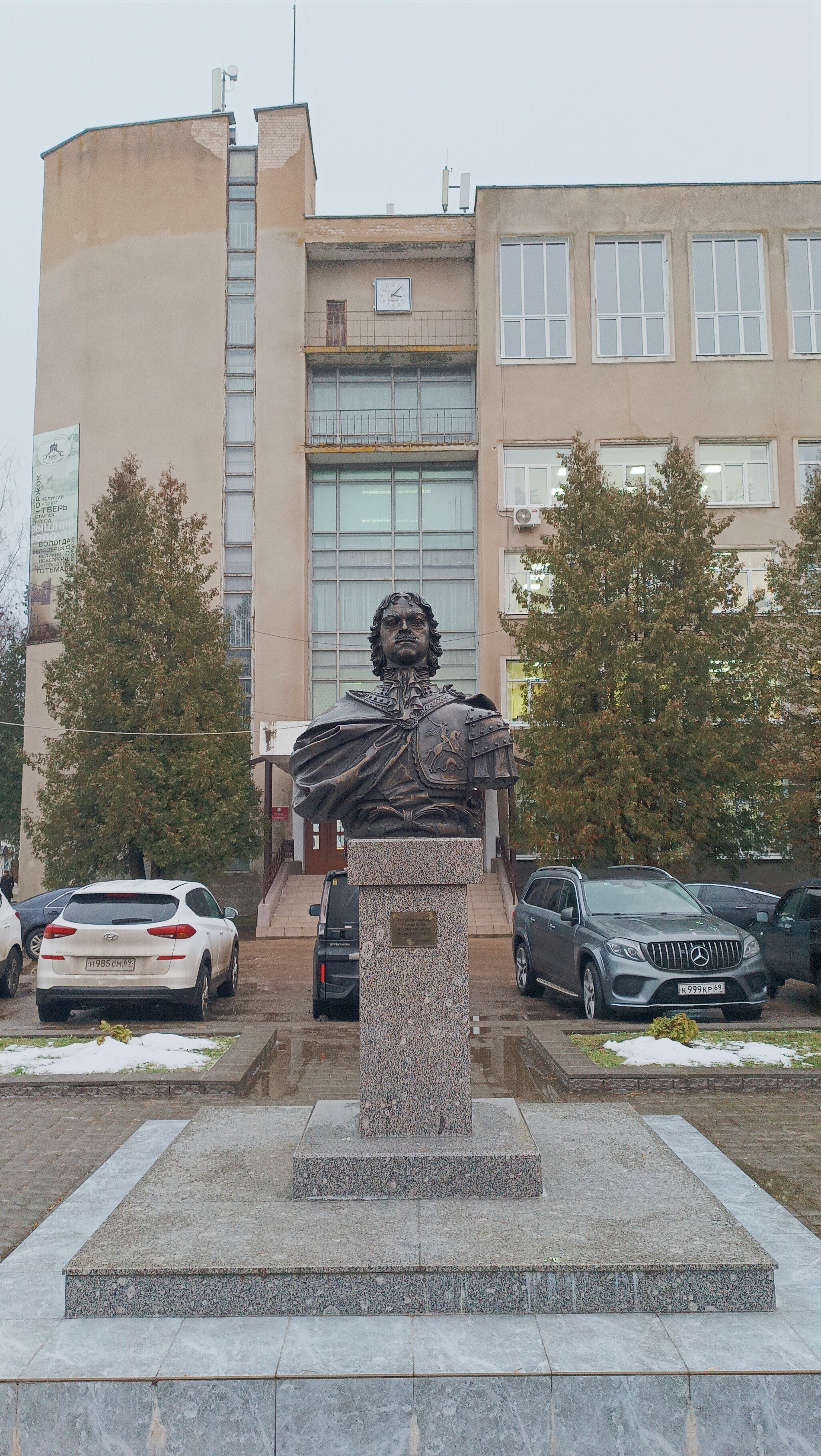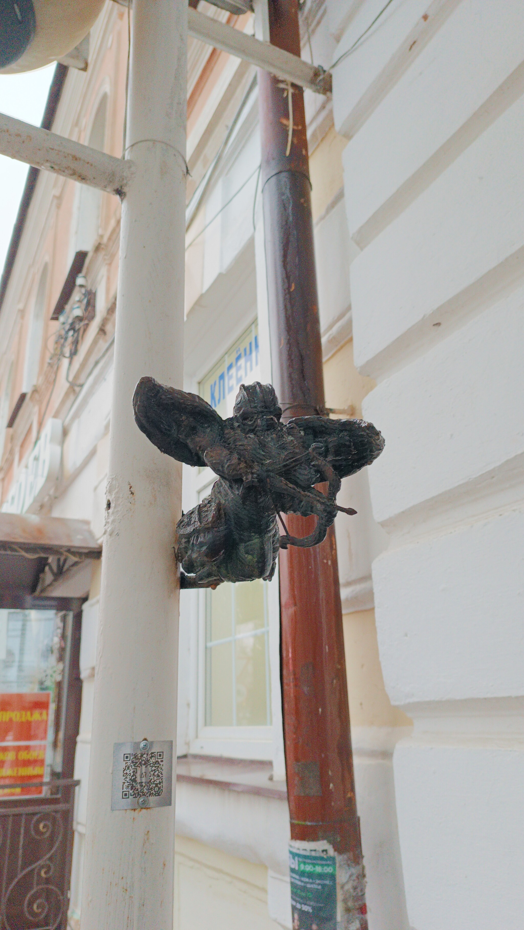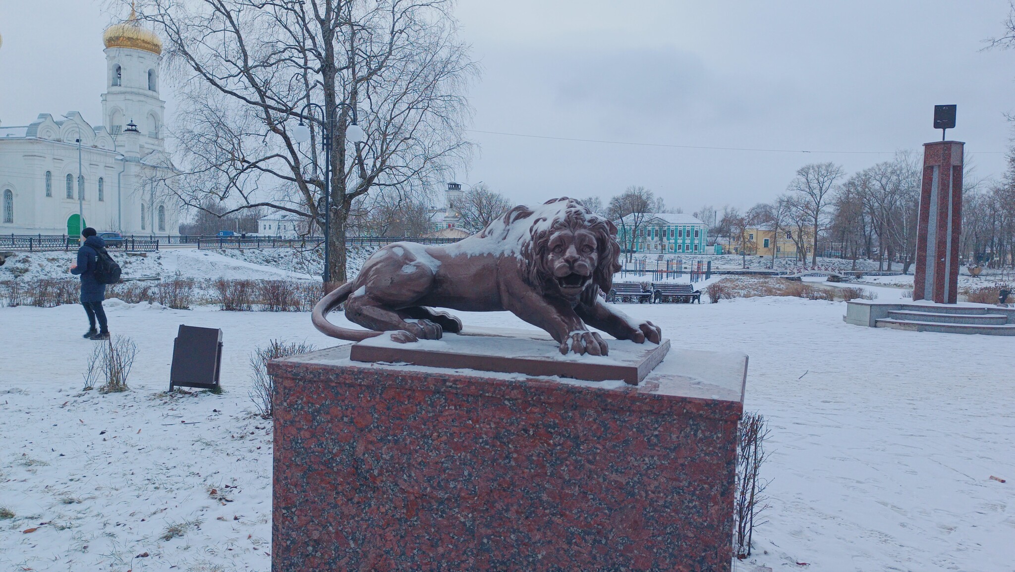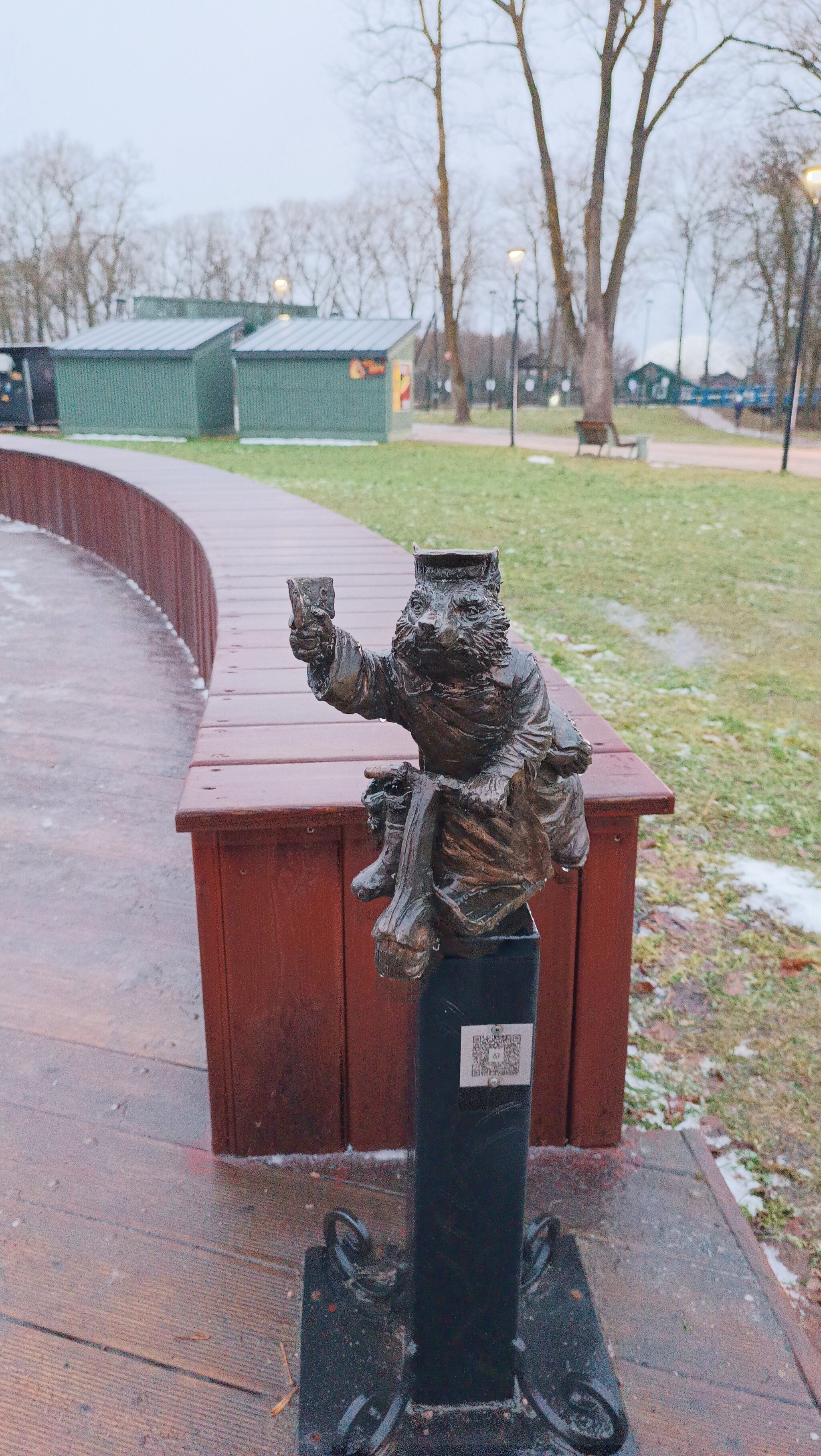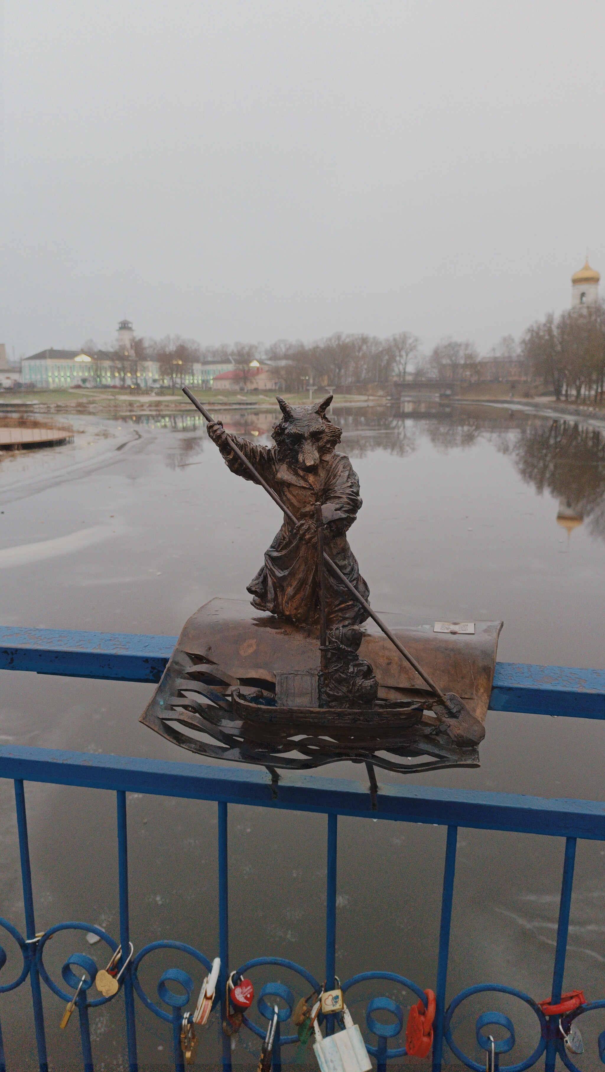 Дальше памятники местные различные, тут и Екатерина, и Пётр, и товарищ Венецианов. Есть серия небольших скульптур волчков различных (помещик, амур, футболист, художник и т.д.) - они "снабжены" QR-кодом. При наведении на него появляется у вас волчок соответствующий данной скульптуре и рассказывает немного об истории в своём ключе. Всё бы ничего, но в связи с отключениями интернета только волчок-художник смог поведать мне свою историю😂
