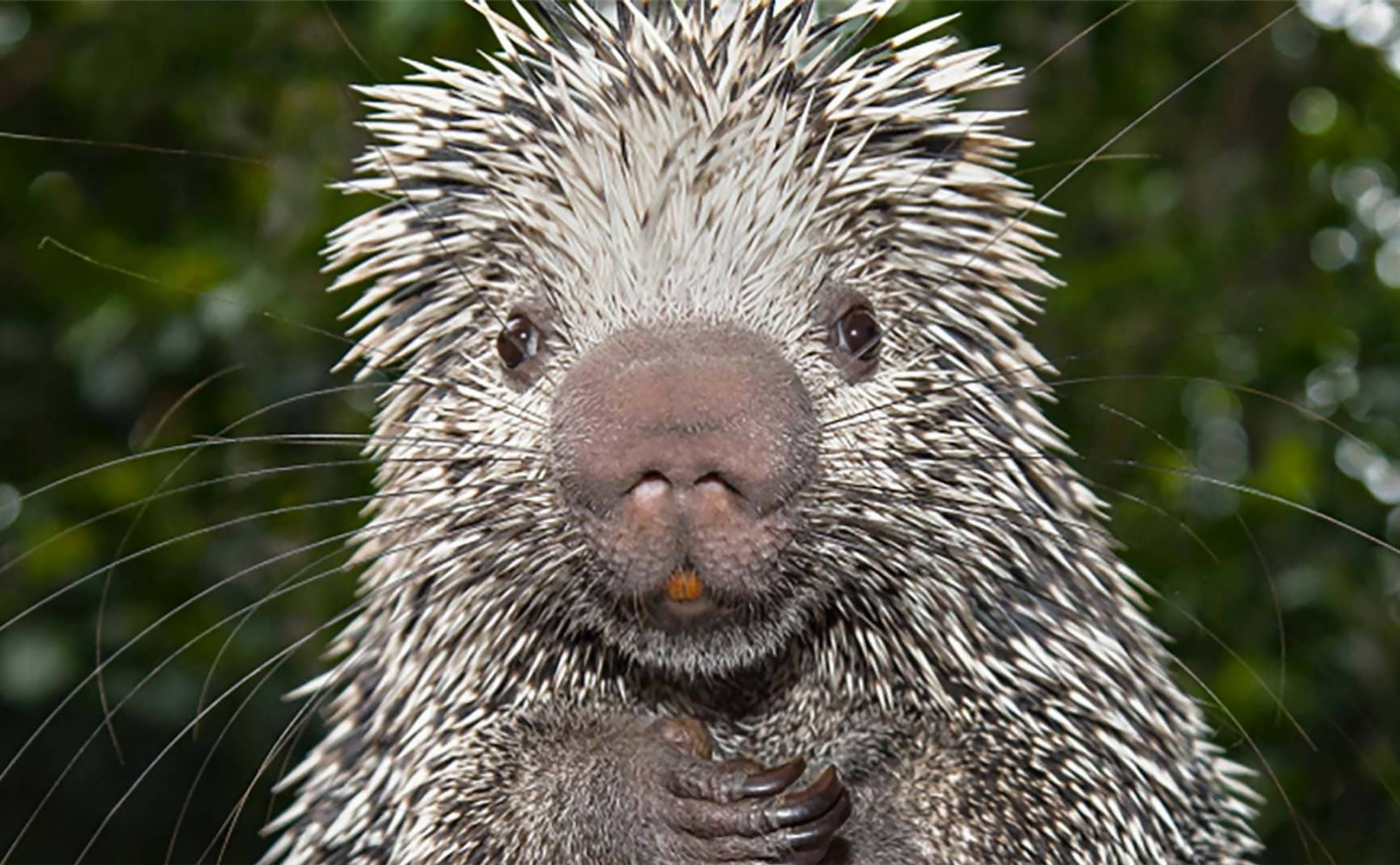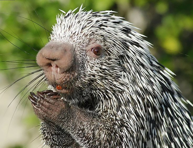 Ещё одним крутым приспособлением к древесному образу жизни являются лапки зверя: они у него мозолистые и очень цепкие. С таким же успехом дикобраза можно было бы назвать не цепкохвостым, а цепколапым – и было бы не менее точно. Лапки-хваталки увенчаны длинными загнутыми когтями, которые помогают не только удерживаться на ветвях, но и срывать и вскрывать плоды, а также отколупывать со стволов кору.