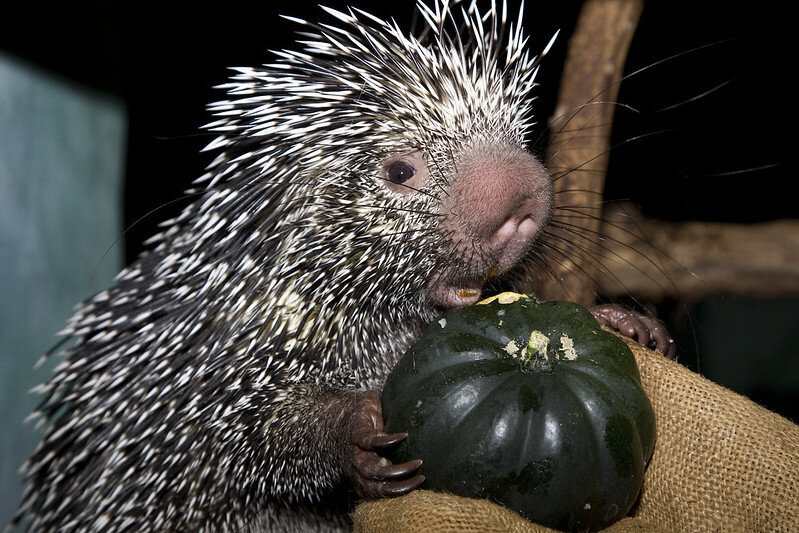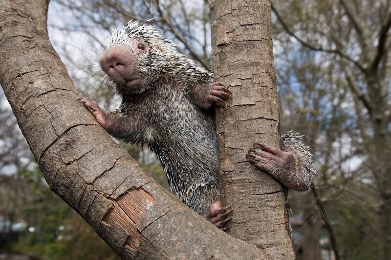 Зовут этого товарища цепкохвостым дикобразом, и это имя подчёркивает его главную фишку – длинный, почти в половину длины тела, хвост, с помощью которого он ловко лазает по ветвям, да ещё и помечает территорию. Там, где хвост коснулся ветви, остаётся метка, которая буквально кричит: «Здесь был Вася дикобраз. Не иди сюда, я опасен!»