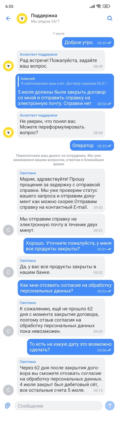 Коллега решила проверить, что будет если написать немного нестандартное обращение в банк, результат на скриншотах 😅