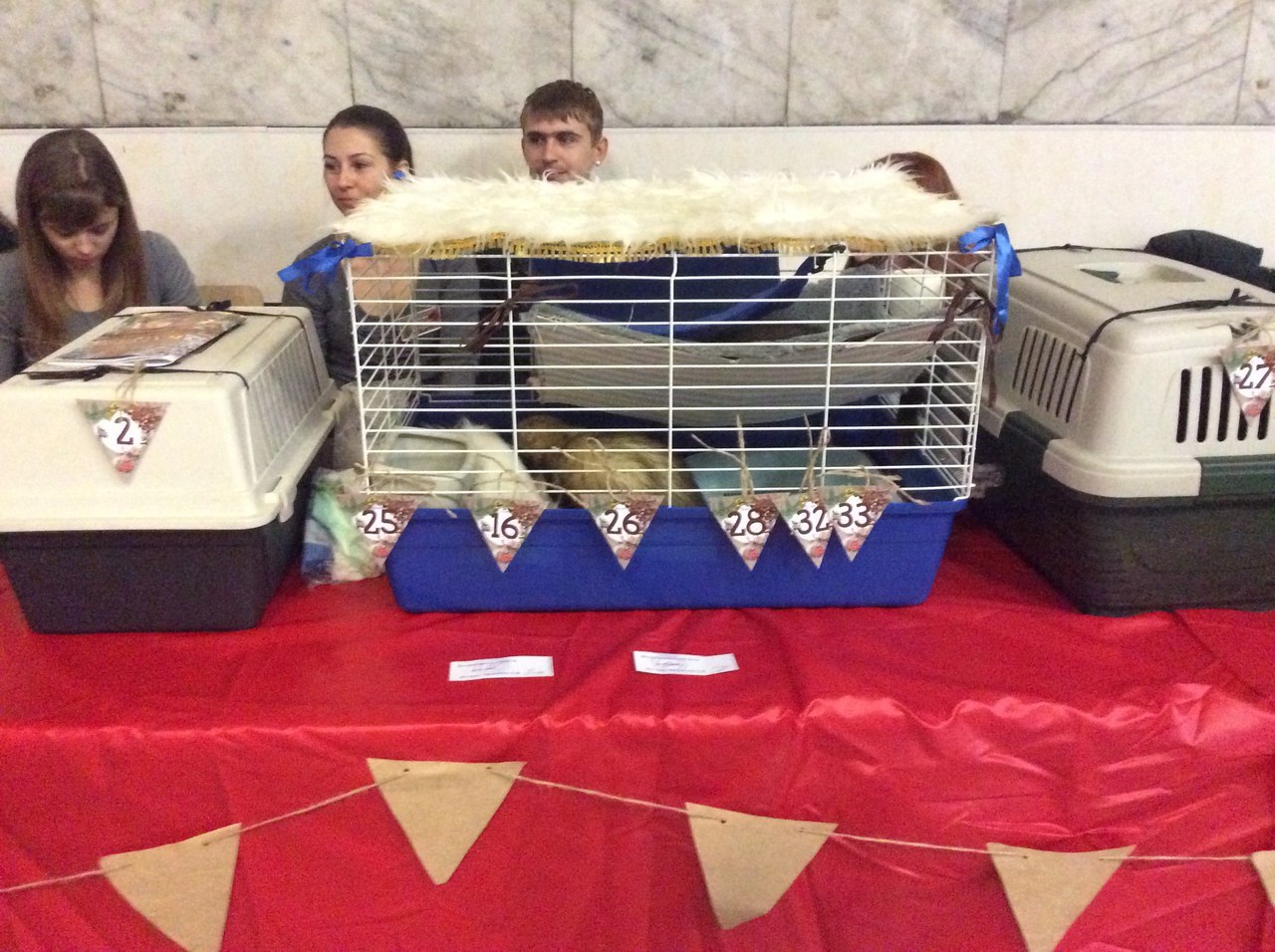А дальше начинается общение с другими хоревладельцами и посетителями выставки. Зверей по номерам забирают за стол экспертов.