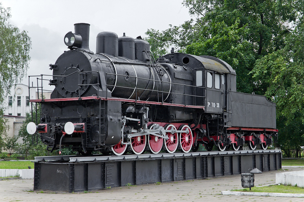 И здесь же на постаменте установлен в качестве монумента паровой локомотив типа 0-5-0 Серии Эр 1952 года выпуска.