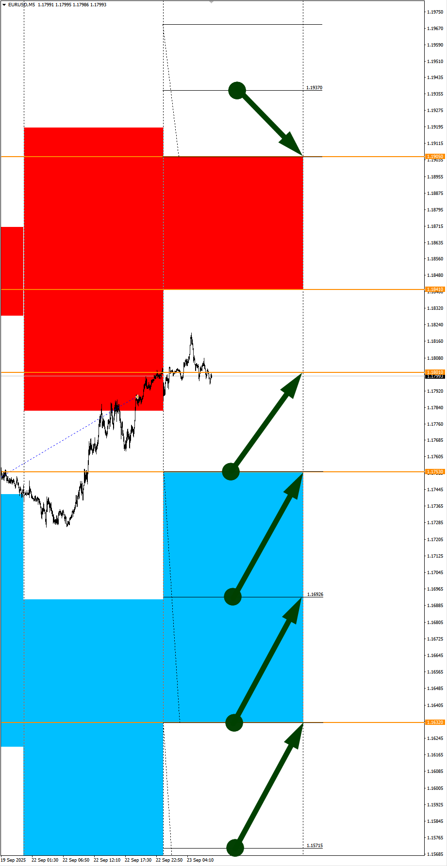 По Евро сегодня вероятность 60% к закрытию дня закрыть день ниже цены открытия дня 1,1801