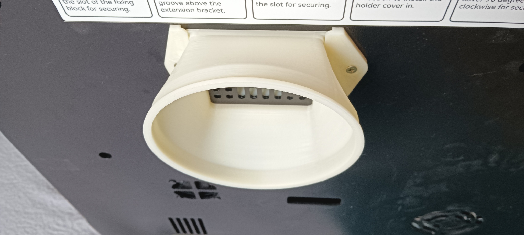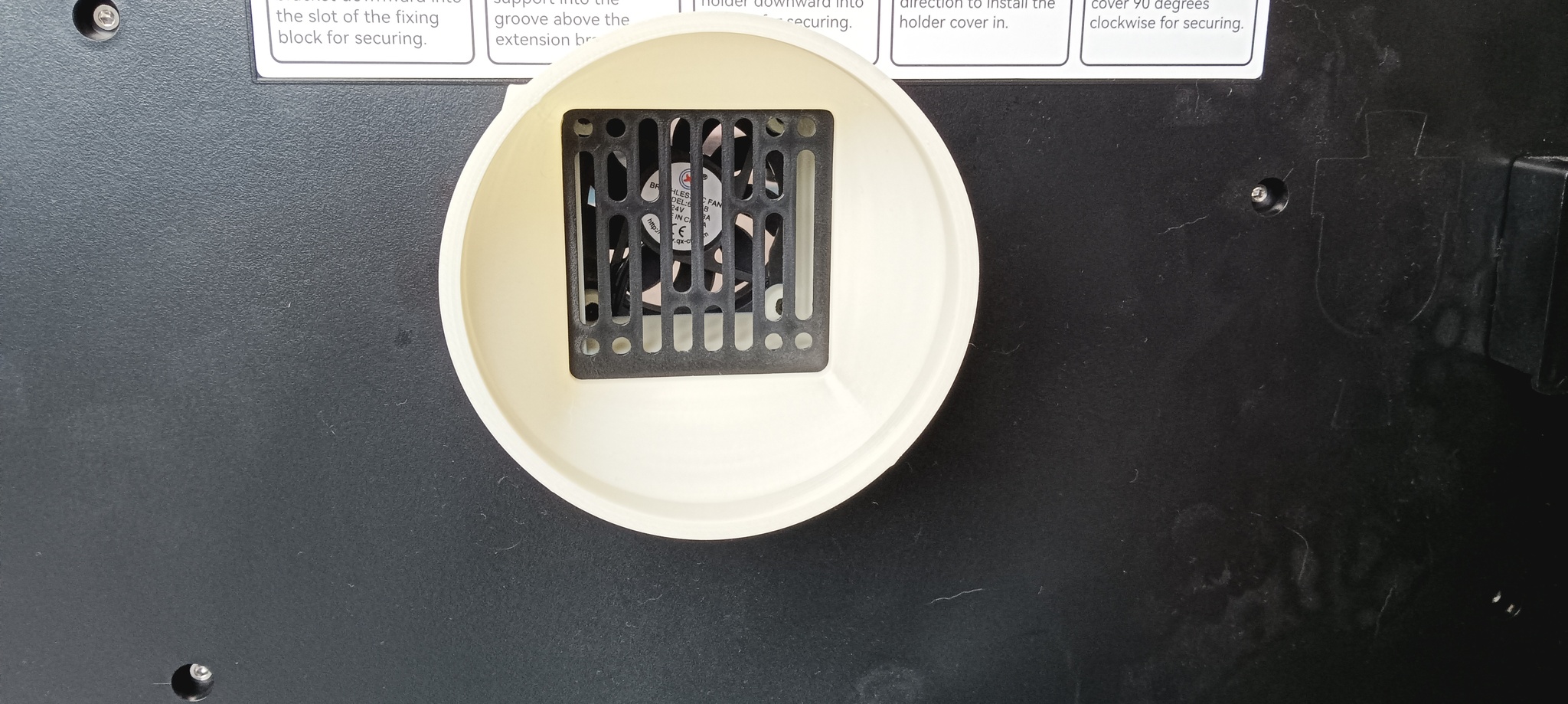 Далее в родные выемки ставится заранее распечатанное крепление адаптера (модельки лежат на printables) для вентиляции и прикручивается в штатных отверстия саморезами (пара 3*20мм).