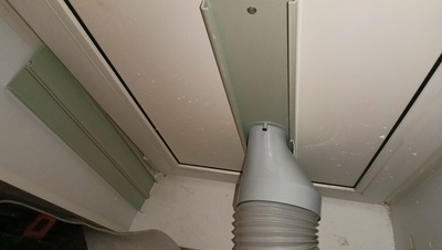 Кидать воздуховывод просто в открытое окно явно не вариант. Городить какие-то заграждения из подручных материалов, типа картона и т.д. мое чувство прекрасного тоже не позволило.