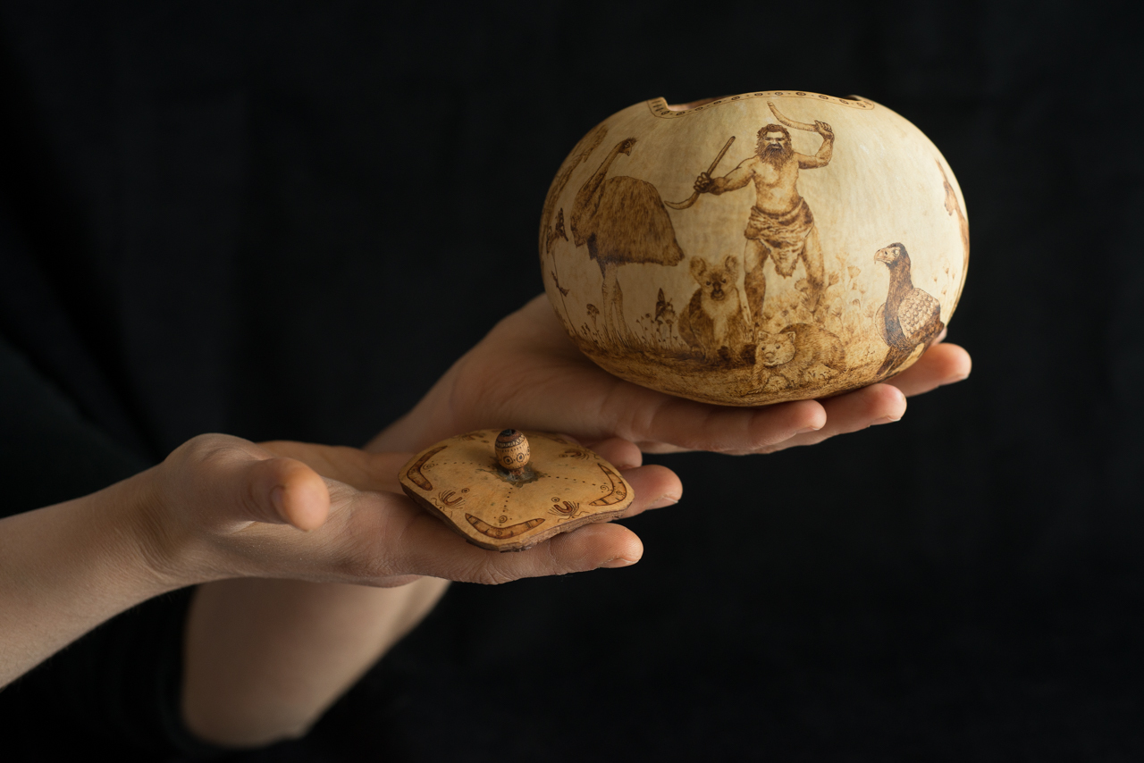 На выжигание вдохновил рассказ «Бумеранг-луна» из книги «Мифы и легенды Австралии», которую я случайно нашла в шкафчике городского буккроссинга.