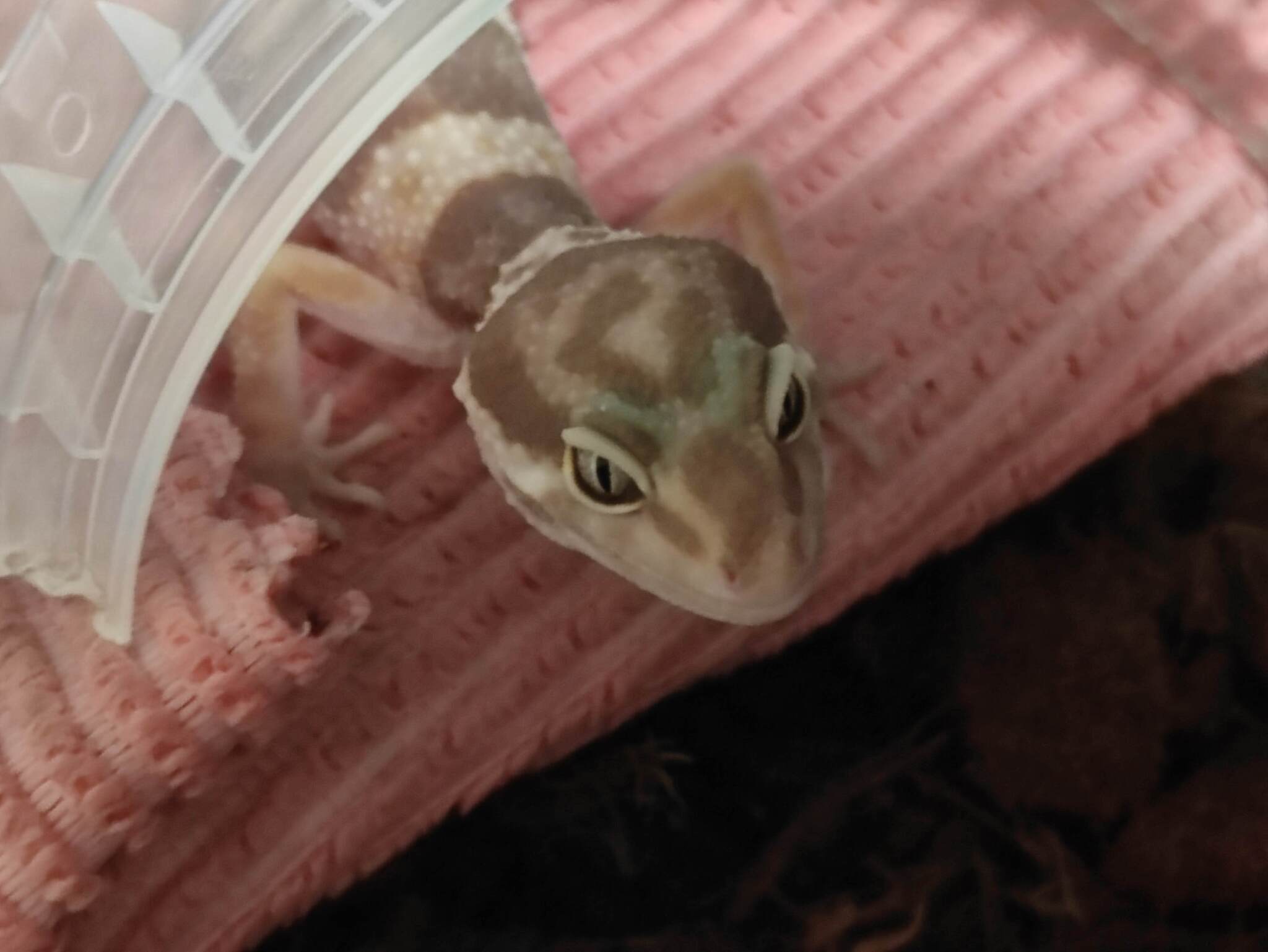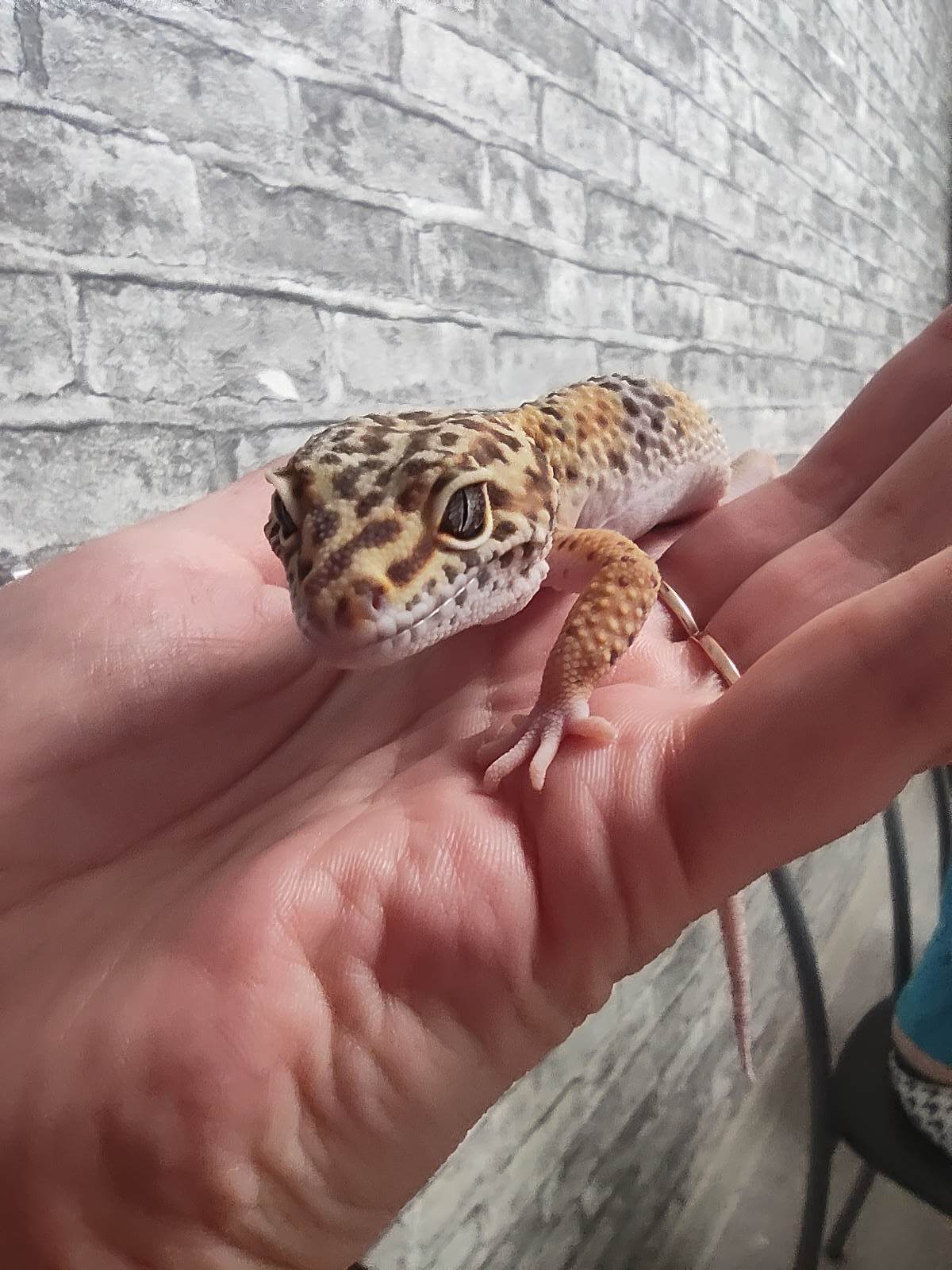 В начале ноября купили малюсенькую эублефарочку дочери в подарок, заселили, в террариум, всё как положено.