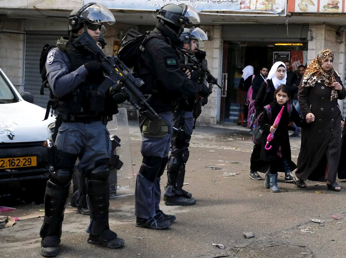 Палестинская девочка и солдаты Израиля