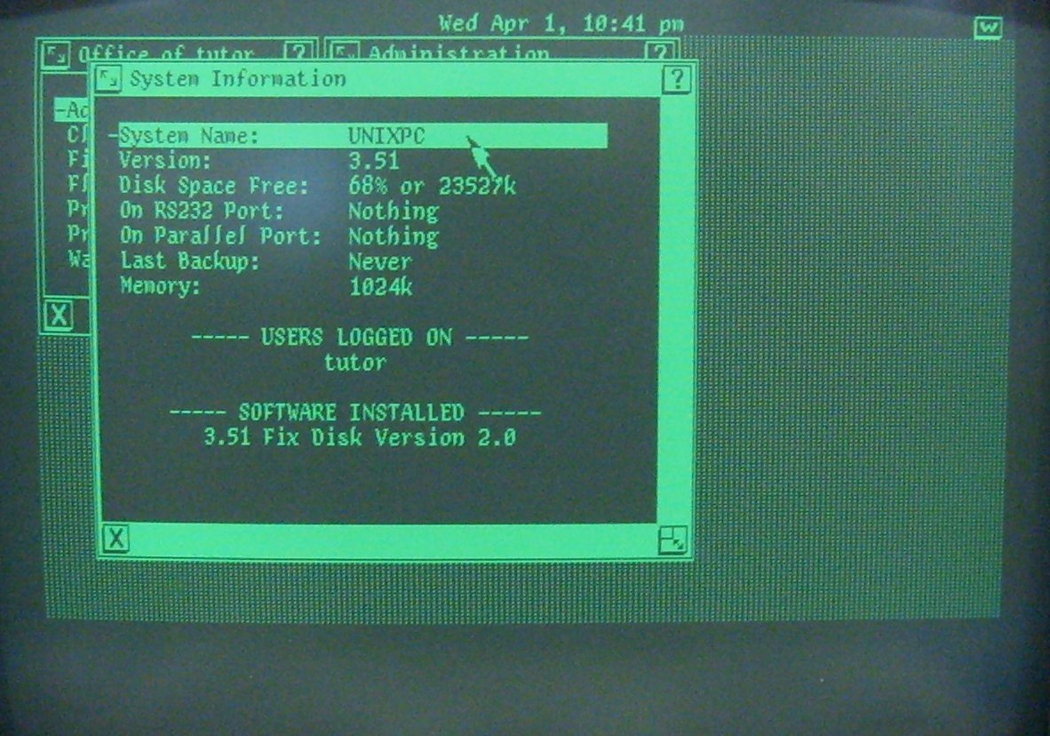 UNIX PC позволял поддерживать работу 5ти пользователей, каждый из который работал за своим терминалом. Один на данном компьютере, а 4 остальных на других терминалах.