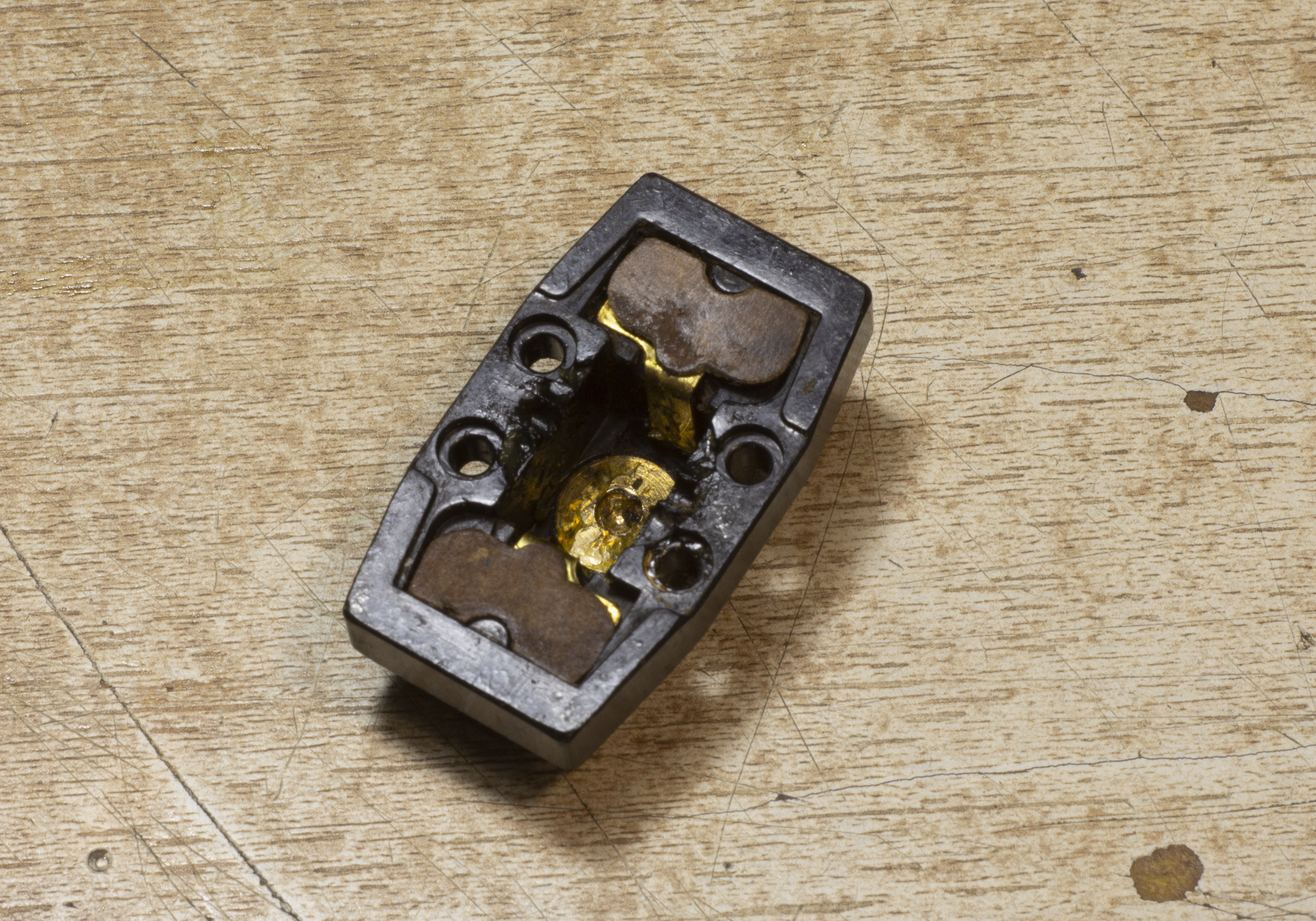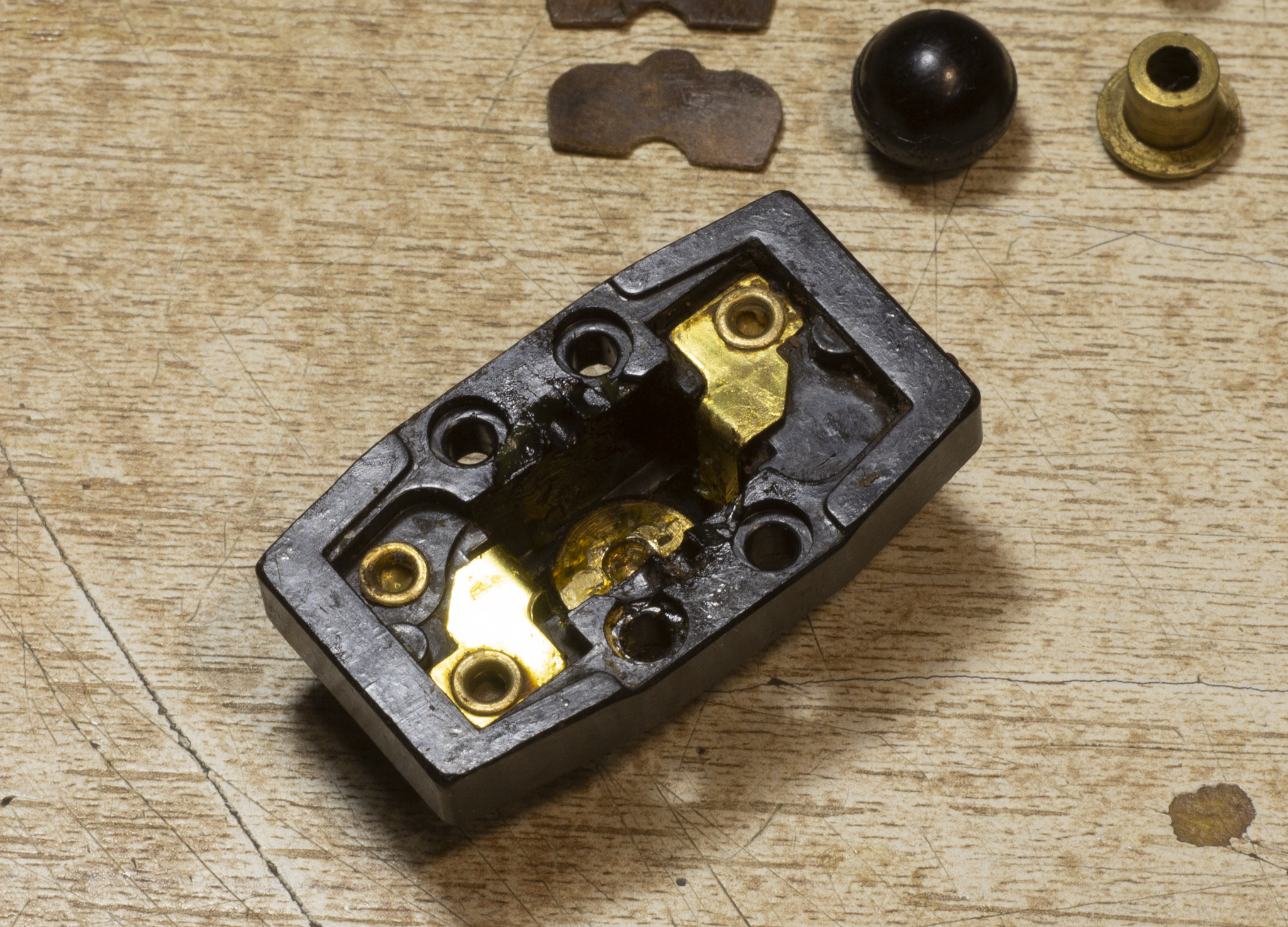 Верх контактов изолируется от накладки прокладками из электрокартона, судя по всему пропитанным в чём-то воскоподобном, на ощупь они немного скользские