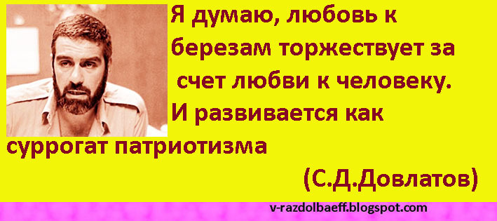 Мне фиолетова «белая берёзынька», отдыхать под пальмами на тёплом море куда комфортнее. Родина для меня двор-колодец на Фонтанке, вот к нему, как ко всему, что связано с детством, юностью, молодостью, nostalgie испытываю. Второй закон экономики от Razdolbaeff`a: "Когда @@й стоит, пломбир вкуснее".