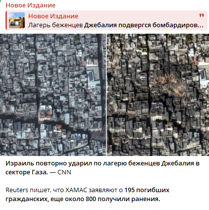 «Северная Газа более красива, чем когда-либо. Взорвать и расплющить все — восхитительно. После того, как мы закончим, мы передадим земли Газы воюющим солдатам и поселенцам, которые жили в Гуш-Катифе».