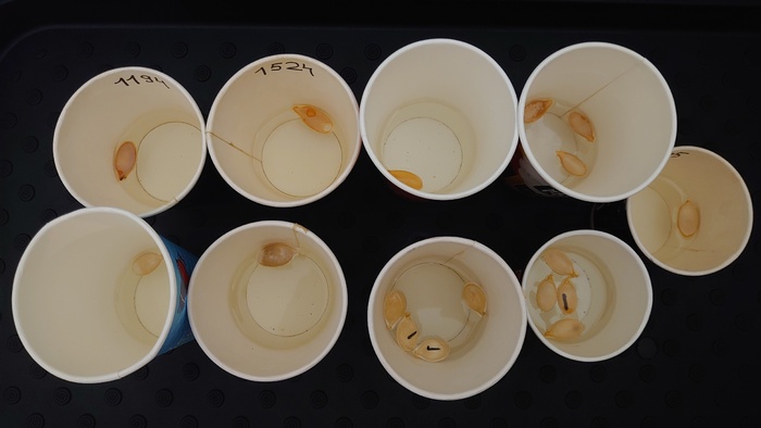 Для того, чтобы они проросли наверняка, мне пришлось танцевать с бубнами, надпиливать края семян, ополаскивать в белизне, потом замачивать на ночь и держать все время при температуре в 30 градусов. На всходы ушло 3 дня.