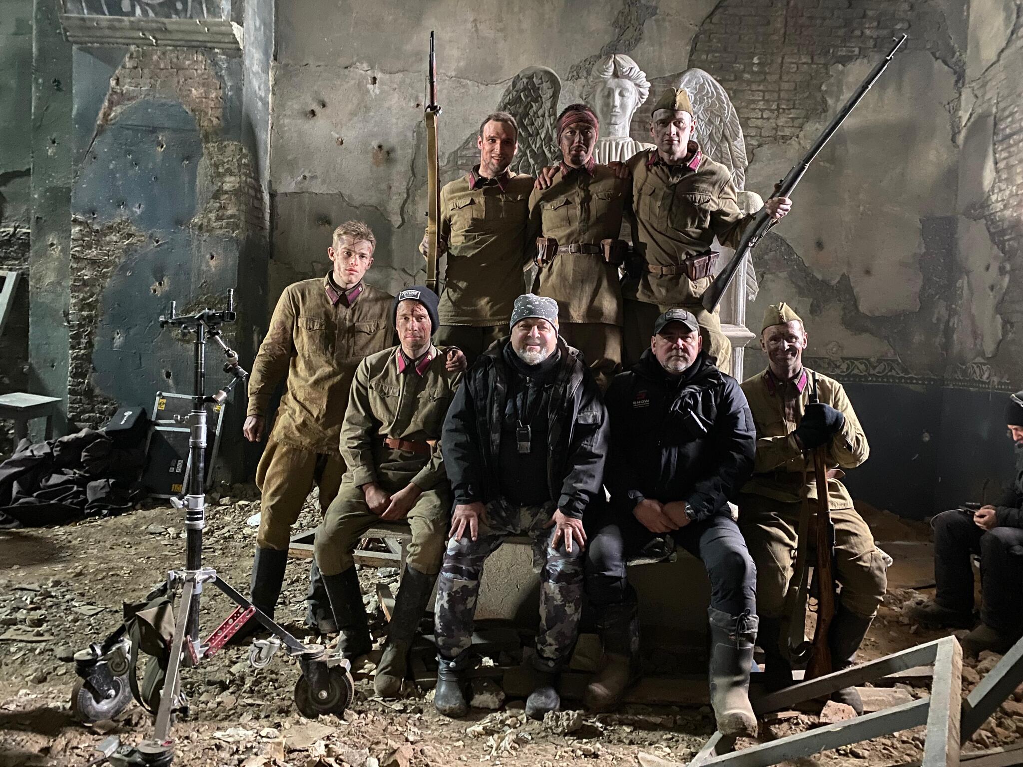 А вот так снимались взрывы. Бабахали там очень неплохо. Были и огненные взрывы, без сильного шума (один даже поджег декорацию; хорошо, что мы успели ее потушить, пока не был нанесен какой-то серьезный урон), а были и пылешумовые. Вот рядом с такими было очень «весело».