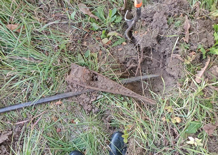 Видимо трещина была. Но она прослужила мне верой и правдой год. Брал обычные фискари и их отлетала пара за сезон точно. Благо, запасная была (фискарс короткий) и я довольно быстро наполнил еще пару мешков: